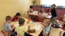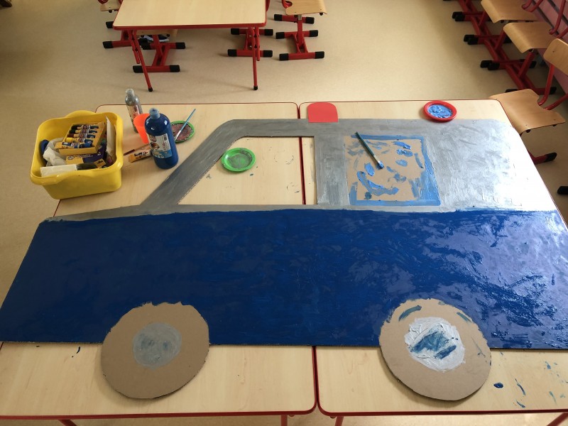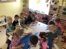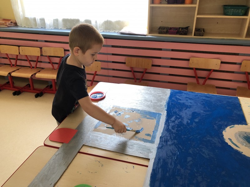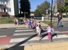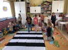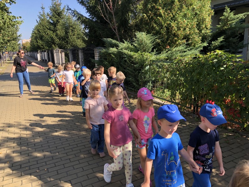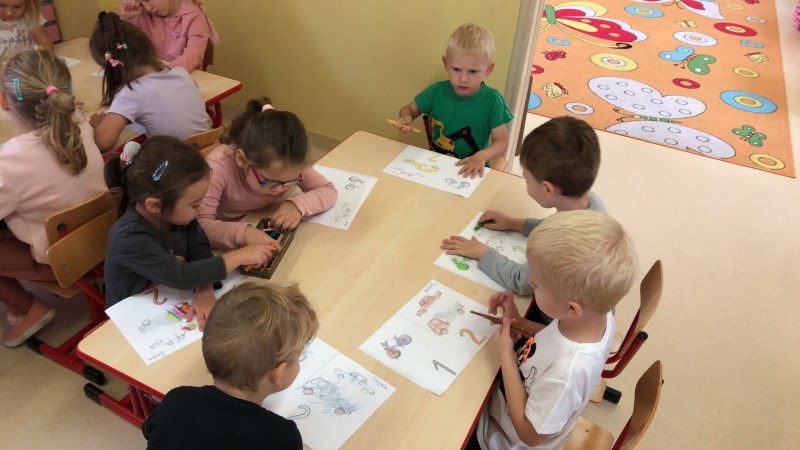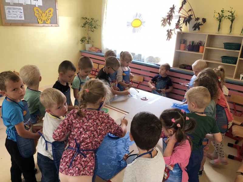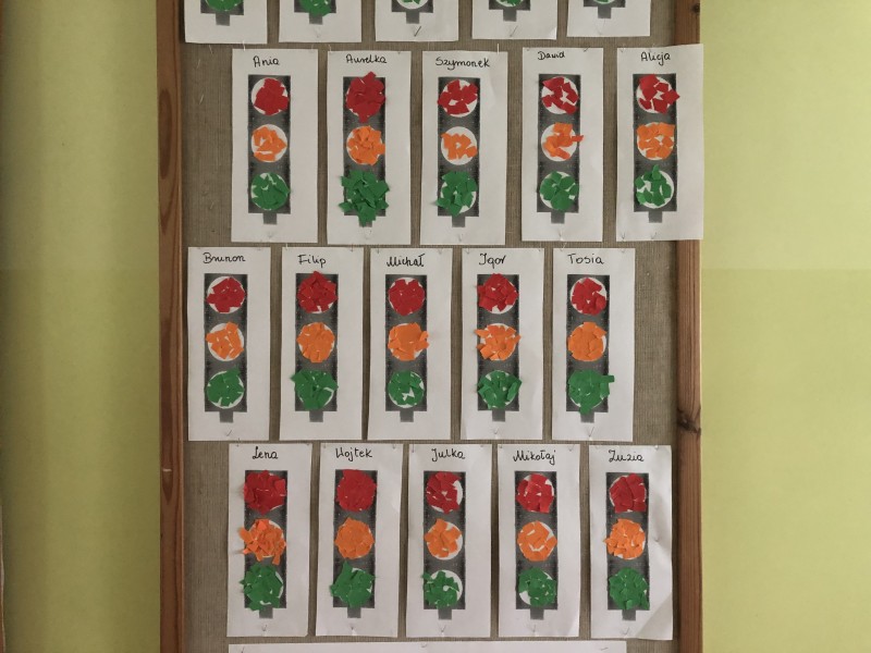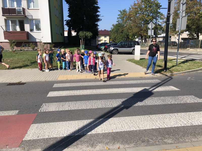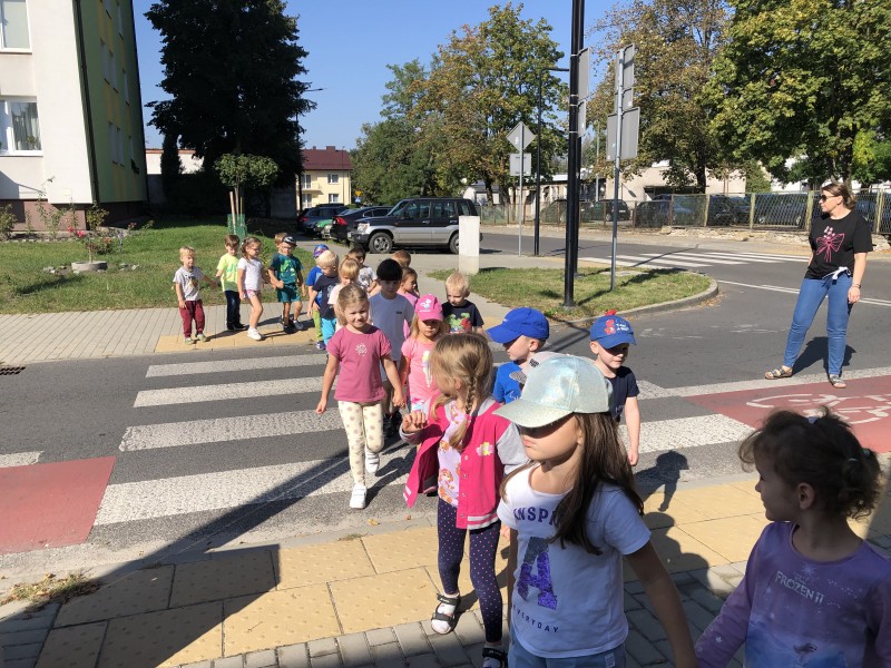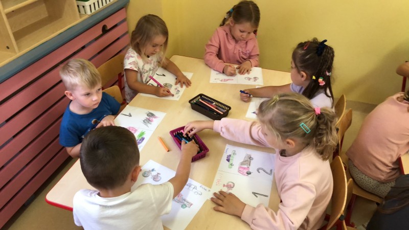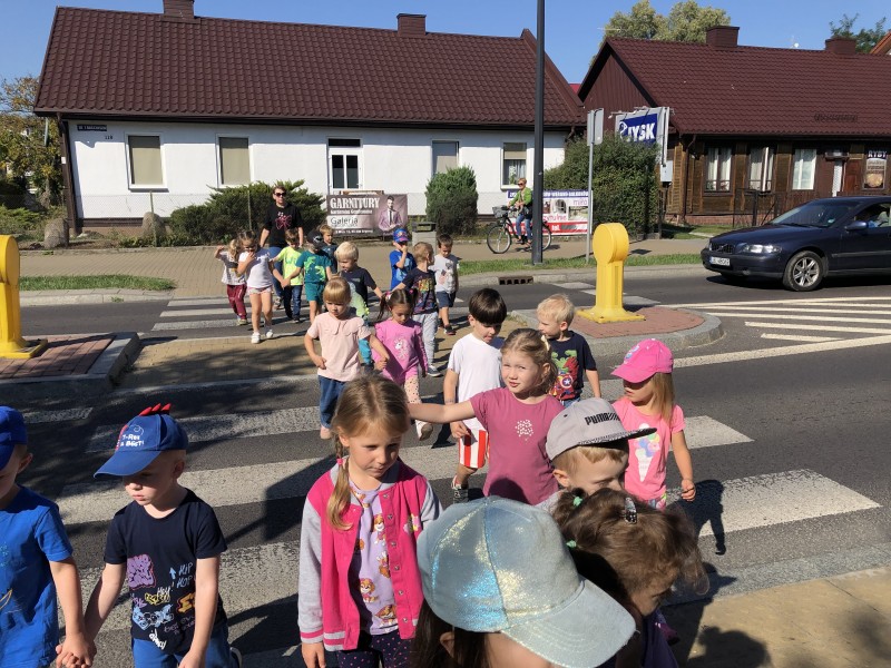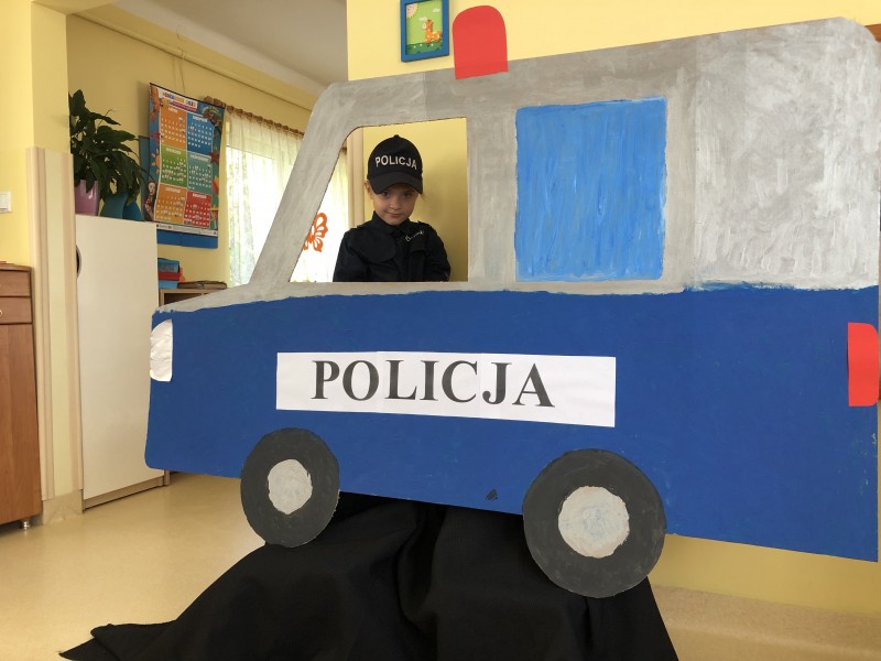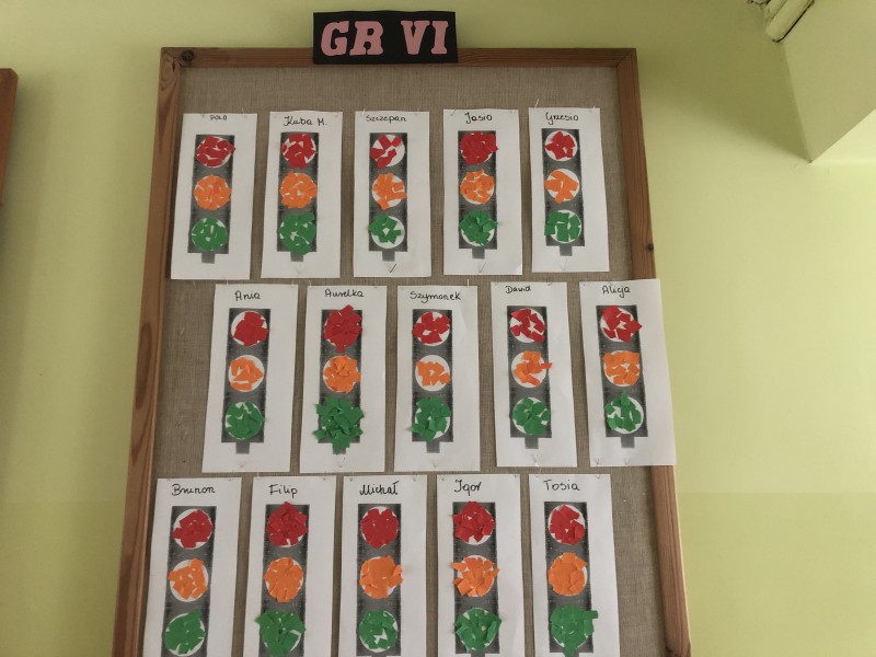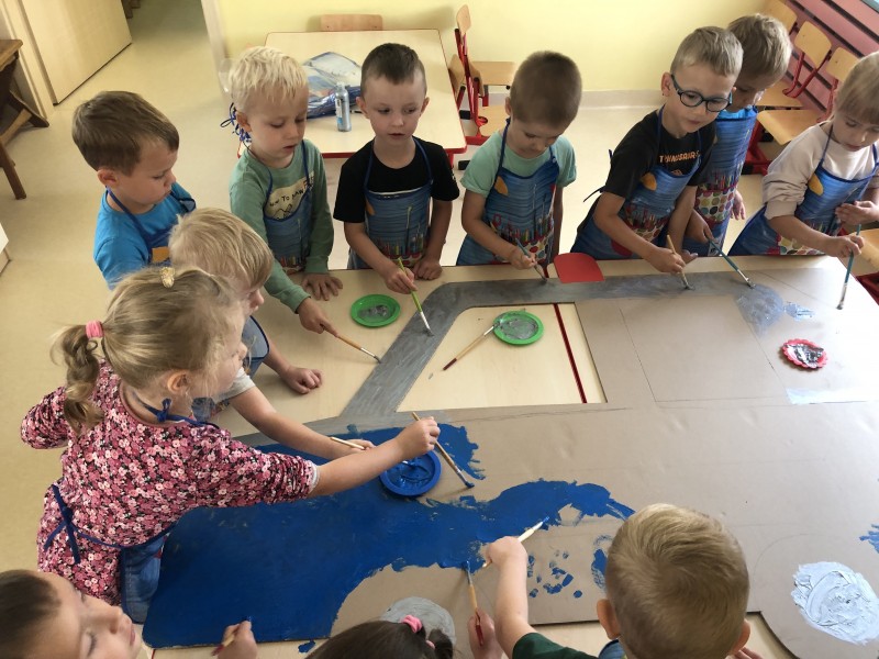 W ostatnich dniach września dzieci z gr. VI poznawały zasady bezpieczeństwa w ruchu drogowym. Dowiedziały się, jak bezpiecznie przejść przez jezdnię, co praktykowały w sali oraz podczas spaceru na skrzyżowanie z sygnalizacją świetlną i bez sygnalizacji. Wyklejały z kolorowego papieru sygnalizator świetlny. Poznawały wybrane znaki drogowe. Uczyły się rozróżniać kolory oraz kształty koła, trójkąta i prostokąta. Segregowały i liczyły różne pojazdy. Zostały wyczulone na zagrożenia podczas omawiania historyjki obrazkowej ,,Uwaga, wypadek!”. Malowały wspólnie makietę samochodu policyjnego, którą wykorzystano w zabawie tematycznej oraz do zrobienia zdjęć pamiątkowych. Wszystkie zabawy sprawiały, że dzieci bardzo aktywnie się w nie angażowały.