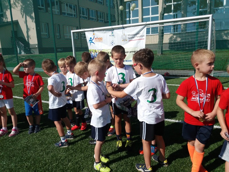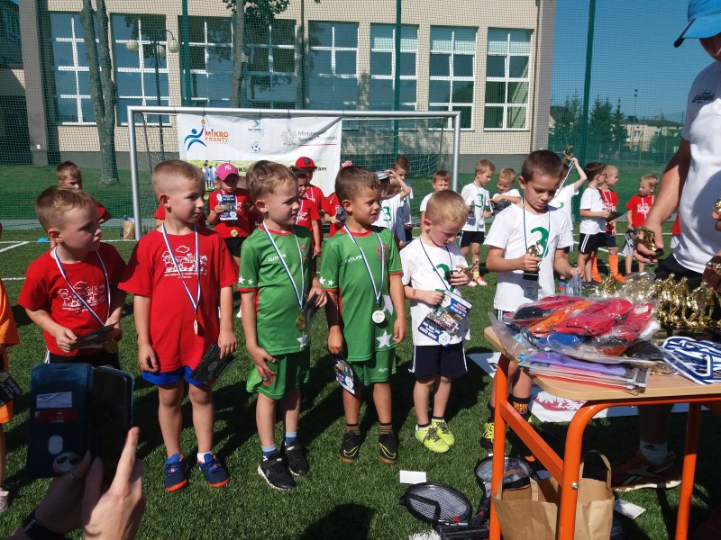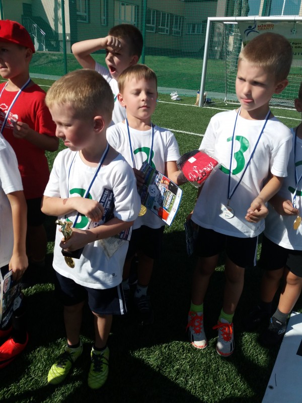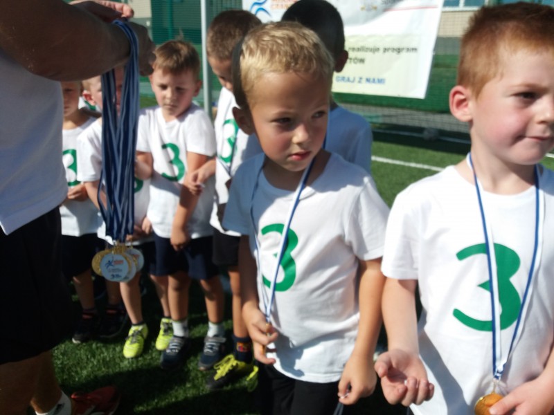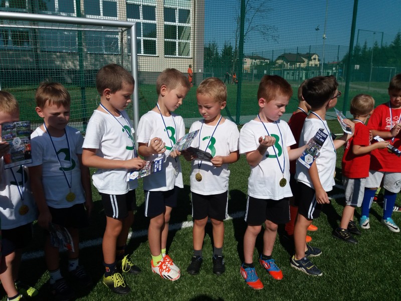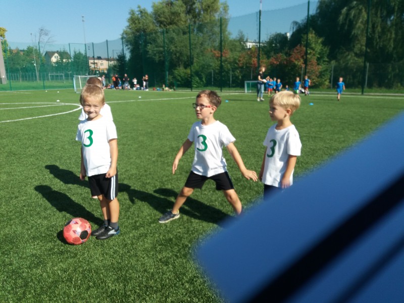 We czwartek 28.09.2023r. Chłopcy z grupy IV wraz z dwoma kolegamj z grupy V uczestniczyli w Turnieju Piłki Nożnej, który odbywał się na boisku przy Technikum Leśnym. Rozegrali tam 4 mecze z rówieśnikami z innych przedszkoli. Otrzymali medale, statuetki i upominki. Wszyscy świetnie się bawili.