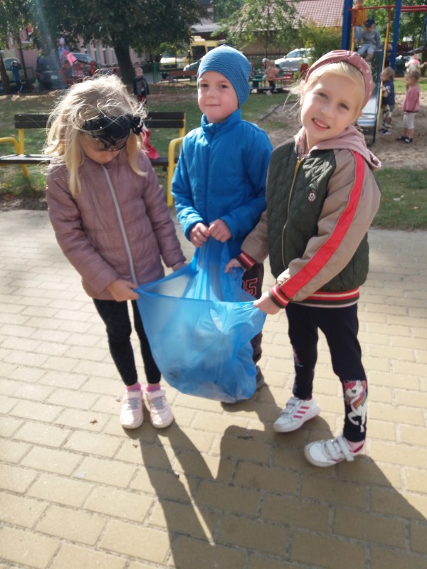 We środę 04 października starszaki brały udział w zajęciach edukacyjnych z ochrony środowiska w 6 edycji akcji #Sprzątamy Dla Polski. Wyzbierały wszystkie śmieci na placu przedszkolnym. Następnie posegregowały wspólnie z nauczycielem do właściwych pojemników.