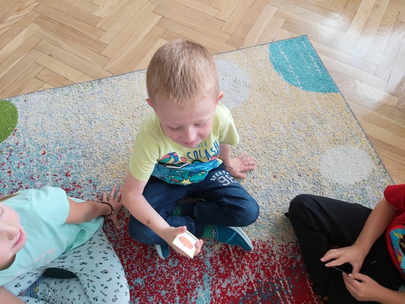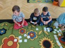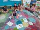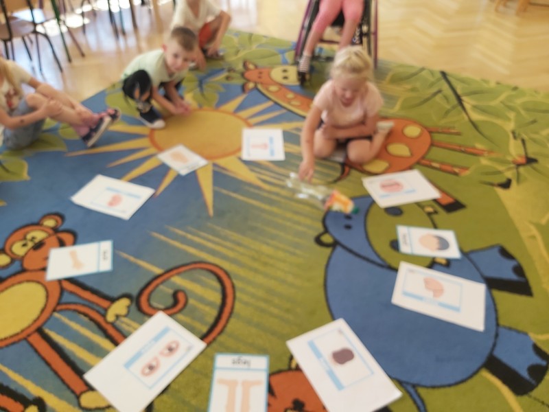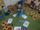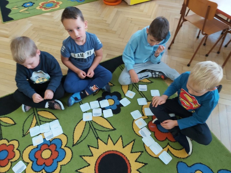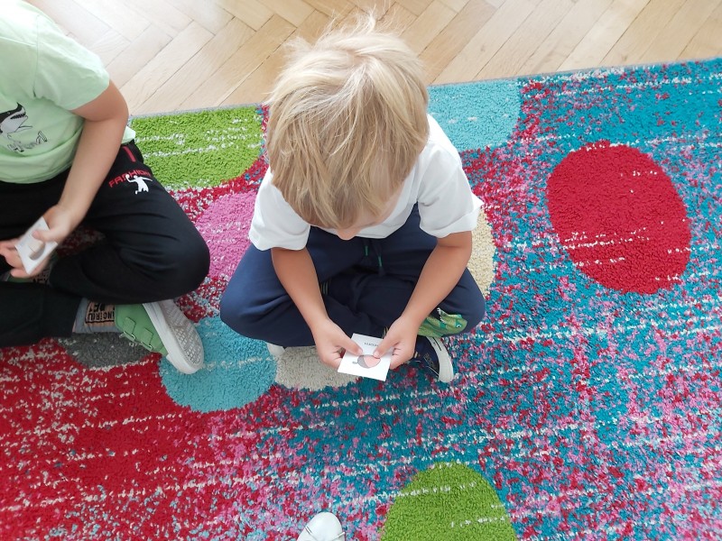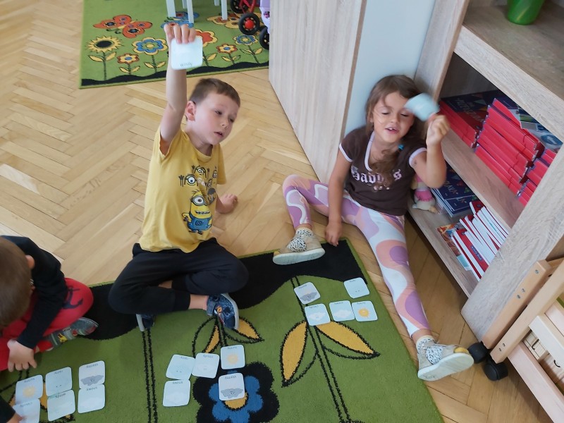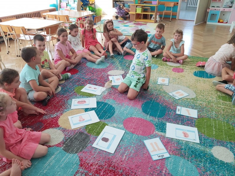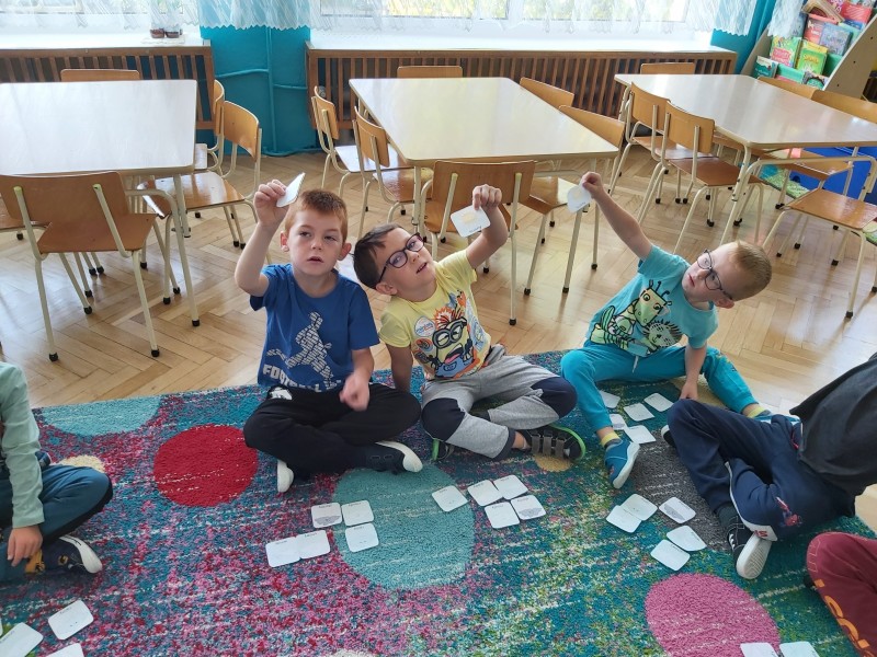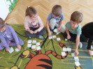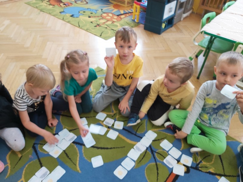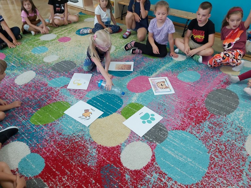 Do tej pory z języka angielskiego zdążyliśmy poznać części ciała nasze oraz zwierząt bawiąc się przy tym znakomicie. Październik rozpoczęliśmy od zapoznania się ze słownictwem, które kojarzy nam się z jesienią (acorn, hedgehog, squirrel, nut, chestnut) oraz zaczęliśmy rozmawiać o pogodzie (windy, sunny, stormy, reiny, snowy).