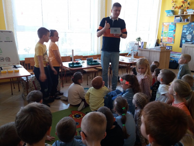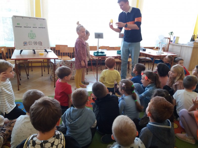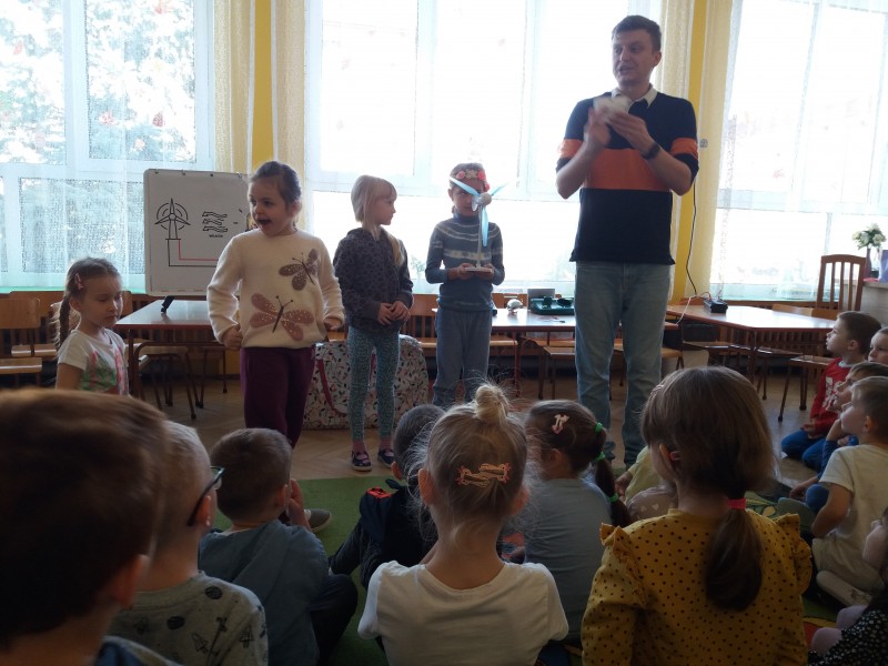 W poniedziałek 30.10.2023r w naszym przedszkolu odbyło się spotkanie dotyczące energii odnawialnej. Dzieci miały okazję dowiedzieć się skąd bierze się prąd elektryczny, jak trafia do naszych domów, jak możemy go oszczędzać oraz jak go pozyskać stosując tzw. alternatywne źródła energii elektrycznej. Było to bardzo wartościowe i pouczające spotkanie.