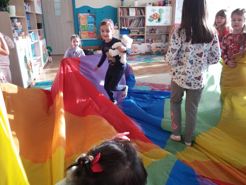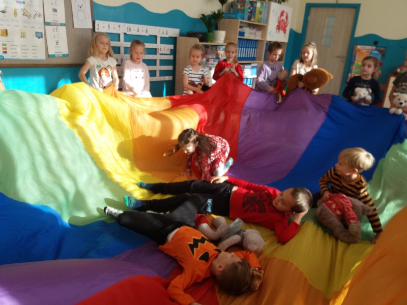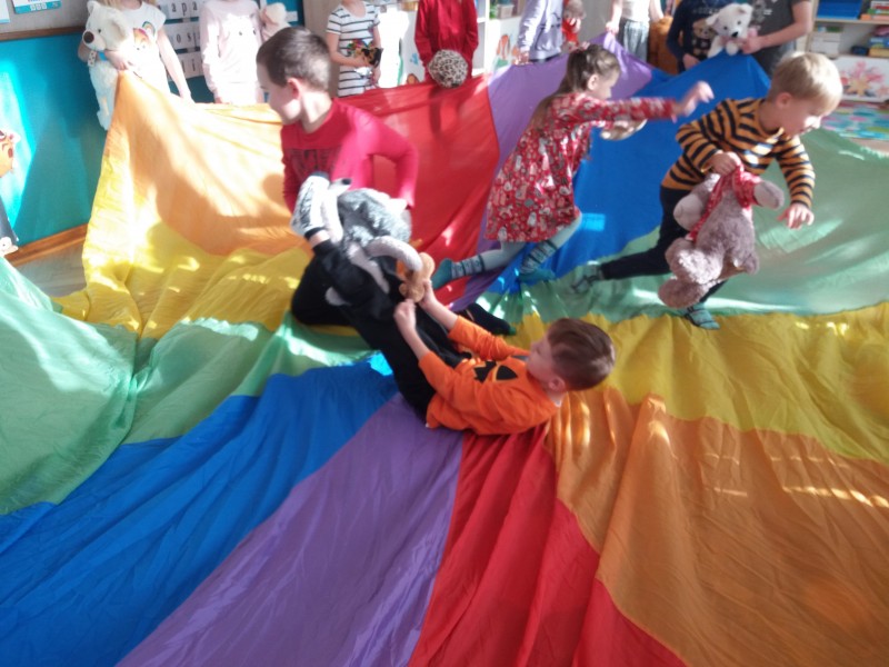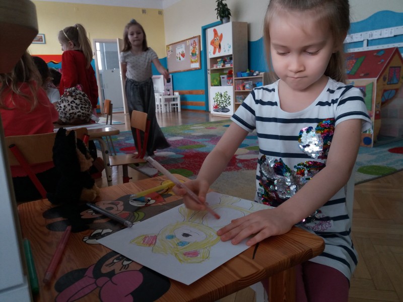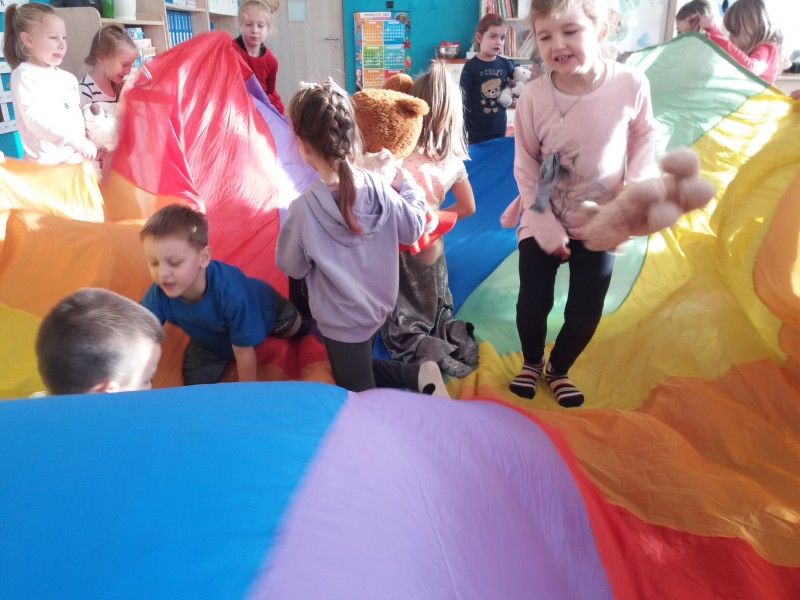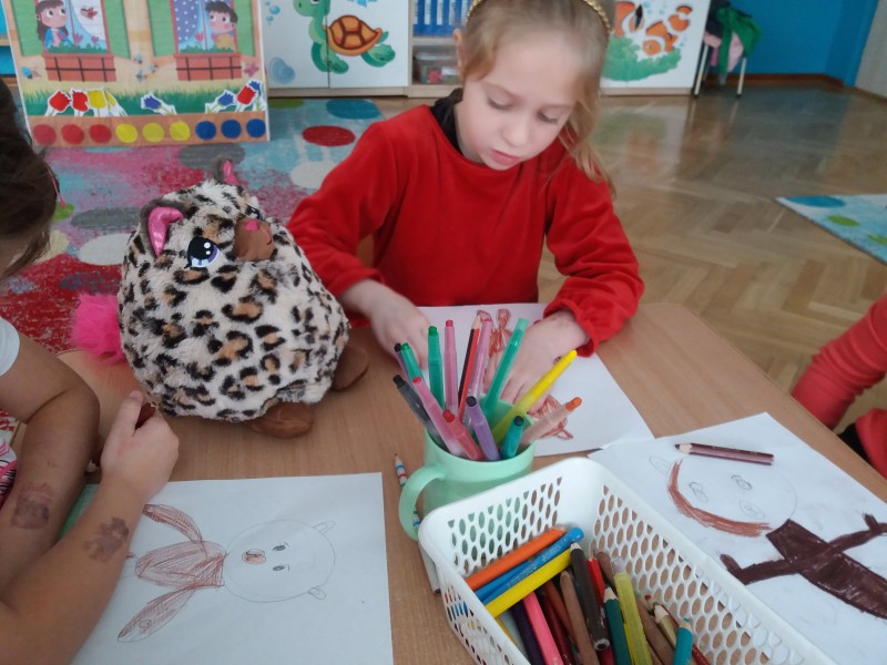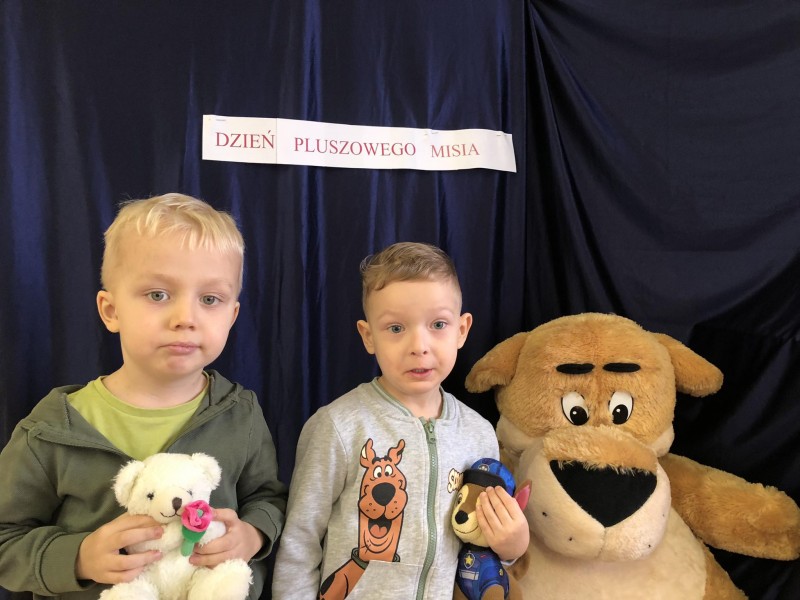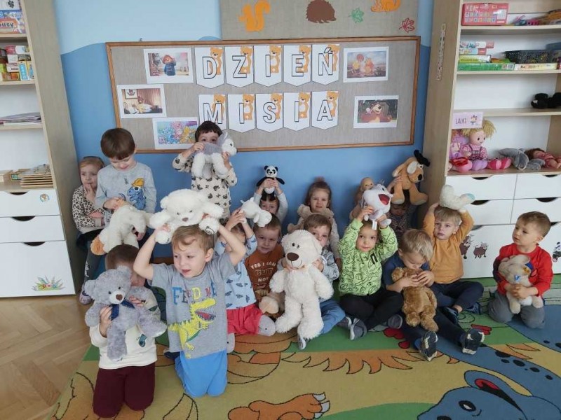 W piątek 24.11.2023.w naszym przedszkolu obchodziliśmy Dzień Pluszoweg Misia. Dzieci przyniosły do przedszkola swoje ulubione pluszaki, którymi bawiły sie w różne tematyczne zabawy. Oglądały filmy edukacyjne o historii powstania tej popularnej dziecięcej zabawki, naklejały misie, rysowały misie, kolorowały misie, z misiami bawiły się w różne ruchowe zabawy. Śpiewały również piosenki o misiach, a nawet jadły Misie Lubisie i misiowe żelki. Cały ten świąteczny dzień upłynął dzieciom w miłej, radosnej atmosferze.