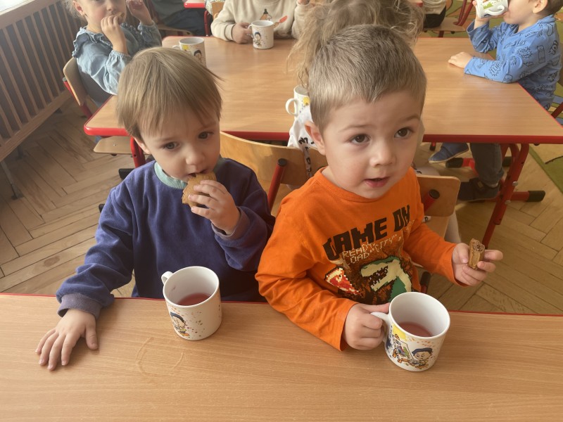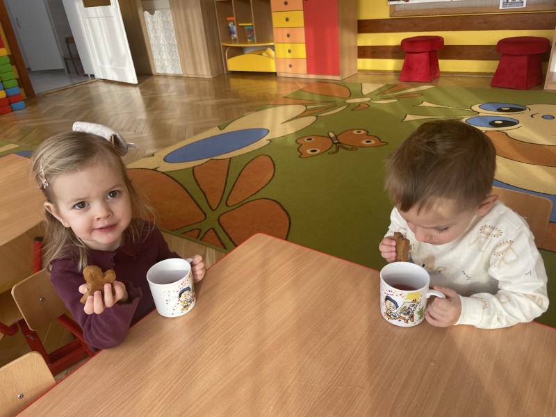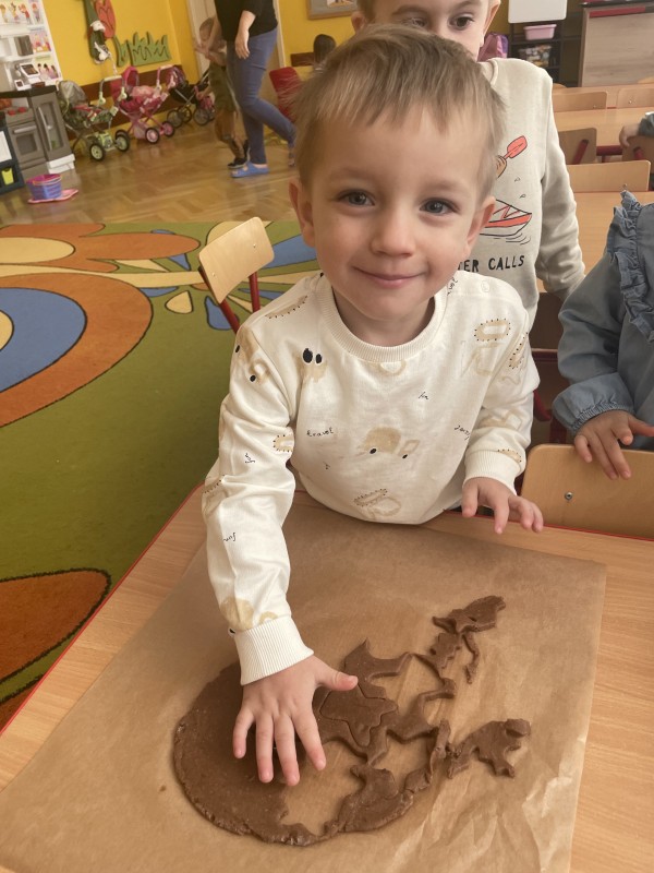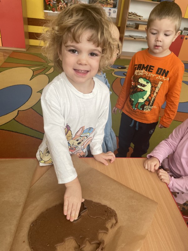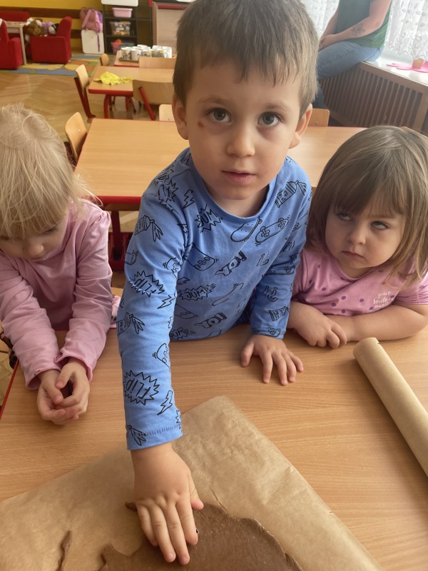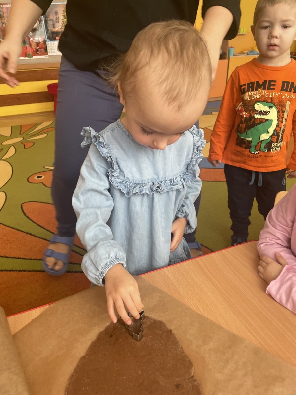 Najmłodsze dzieci z Naszego przedszkola przygotowują się do Świąt Bożego Narodzenia od wczesnych lat. Dziś zrobiły własnoręcznie wykrawane pierniczki. Dowiedziały się z jakich składników wyrabia się ciasto na pierniczki. Obserwowały moment zagniatania ciasta. Wykrawały wybranymi foremkami i układały ciasteczka na blasze. Po upieczeniu i ostudzeniu mogły spróbować. Wszyscy byli dumni ze swojej pracy.