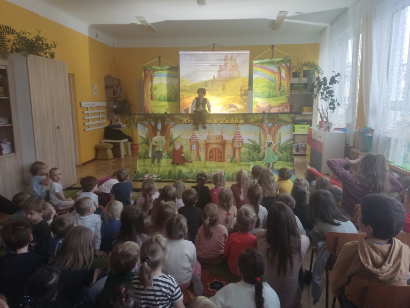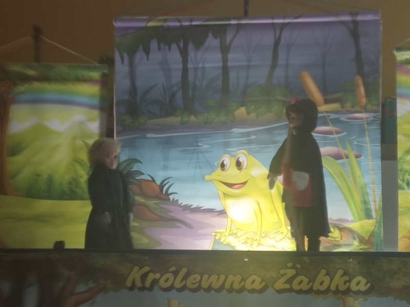 Dzisiaj tj. 14 grudnia zawitał do naszego przedszkola teatrzyk kukiełkowy zorganizowany przez firmę Aster4kids. Dzieci miały możliwość obejrzenia spektaklu pt. „Królewna Żabka”. Atrakcyjna, kolorowa scenografia, pokaźne i ciekawe kukiełki oraz różnorodna oprawa muzyczna - wszystkie te elementy złożyły się na wielkie zadowolenie naszej przedszkolnej publiczności. Dzieci poznały fabułę bajki, a na zakończenie za wzorowe zachowanie otrzymały nagrodę w postaci kalendarza ze zwierzątkami.