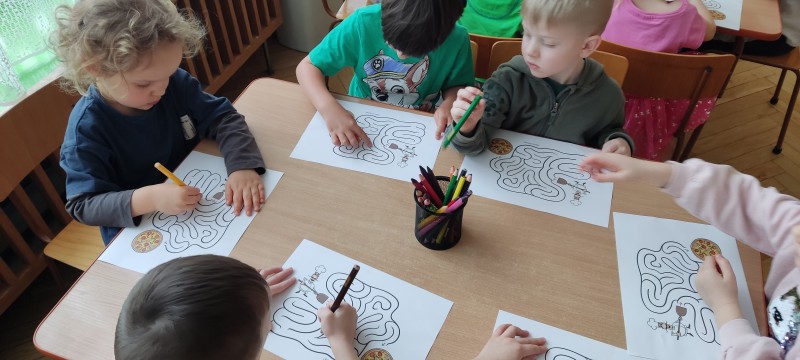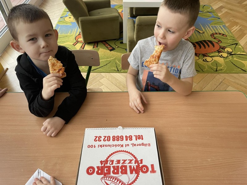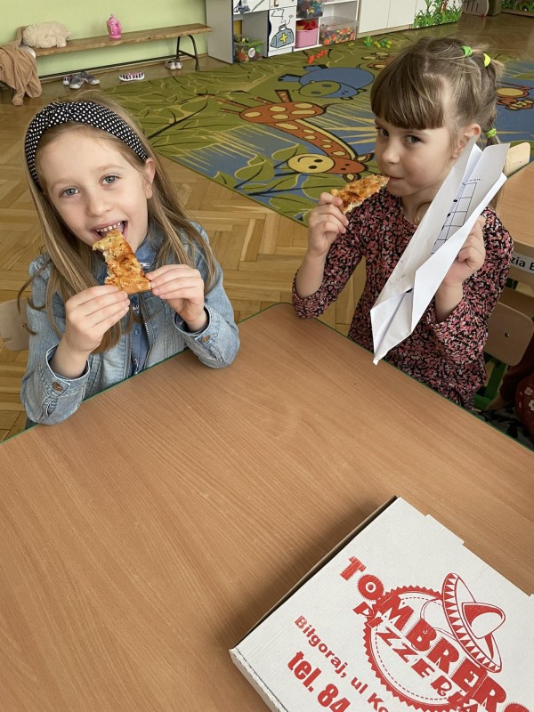 A jaka jest Wasza ulubiona pizza? To pytanie zadaliśmy naszym przedszkolakom. Odpowiedzą na nie było wykonanie swojej ulubionej pizzy na kilka sposobów. Były pizze papierowe, plastelinowe, labirynty. Ale najwięcej radości zapewniła dzieciom degustacja pysznej pizzy w porze podwieczorku.