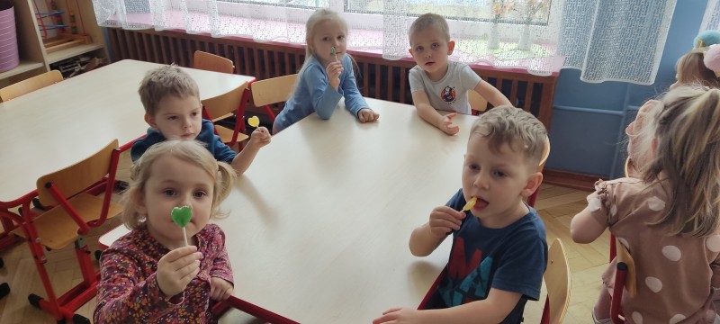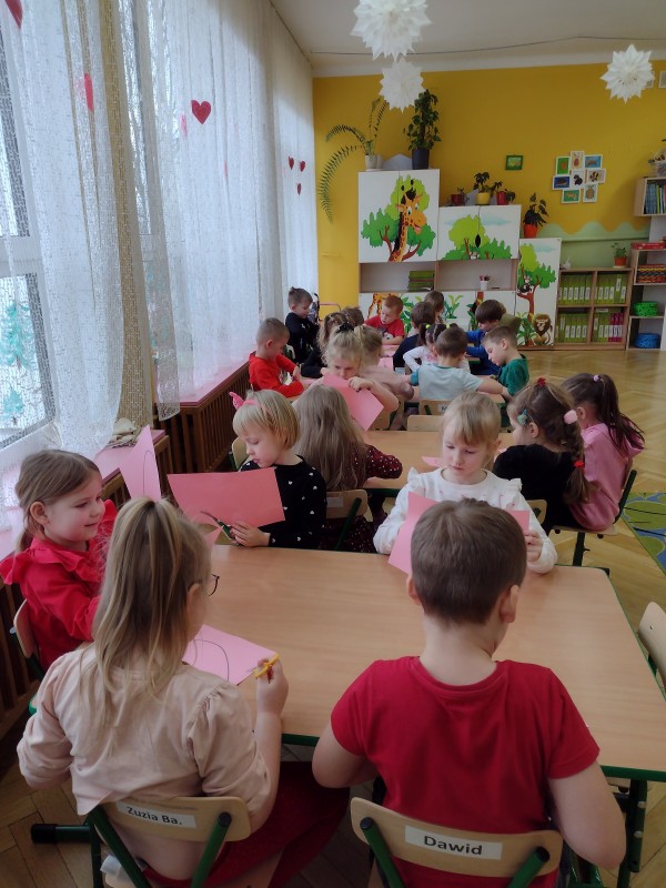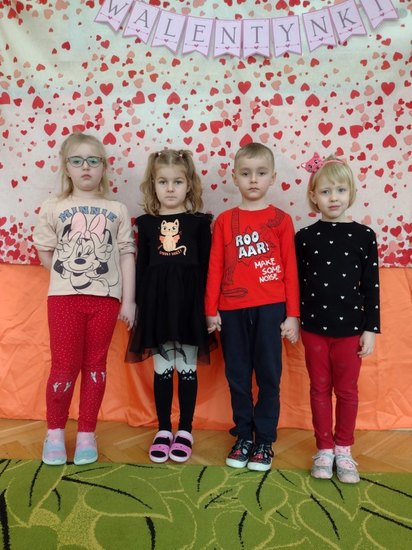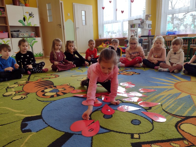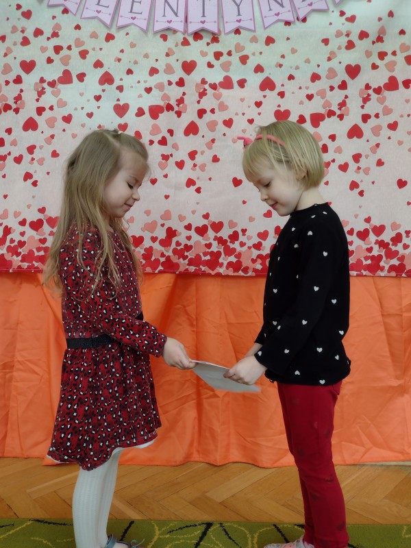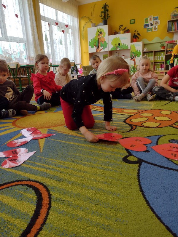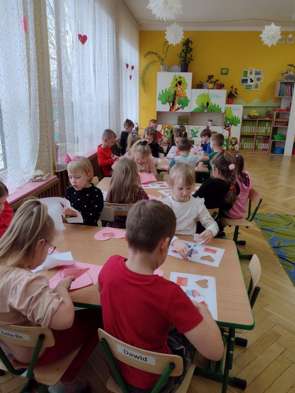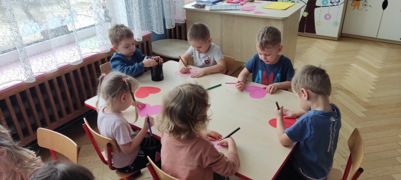 W naszym przedszkolu każda grupa świętowała we własnym gronie. Dzieci wzięły udział w różnych zabawach związanych z Walentynkami, m. in. szukały drugiej połówki serca oraz układały odpowiednią ilość serduszek, doskonaląc przy tym umiejętności matematyczne, bawiły się podczas zajęć ruchowych do piosenki "Walentynka".Było też walentynkowe kodowanie na dywanie. Wykonały również pracę plastyczną – „Najpiękniejsze serduszko walentynkowe” oraz laurki, które następnie wręczyły swoim kolegom i koleżankom z grupy. Na zakończenie dzieci z gr. III zjadły pyszne lizaczki w kształcie serduszek przyniesione przez Wiktorię. Dzisiejszy dzień dostarczył wszystkim wiele radości i emocji.