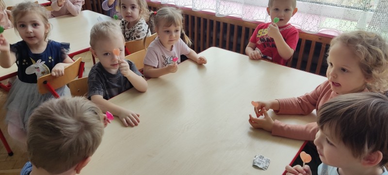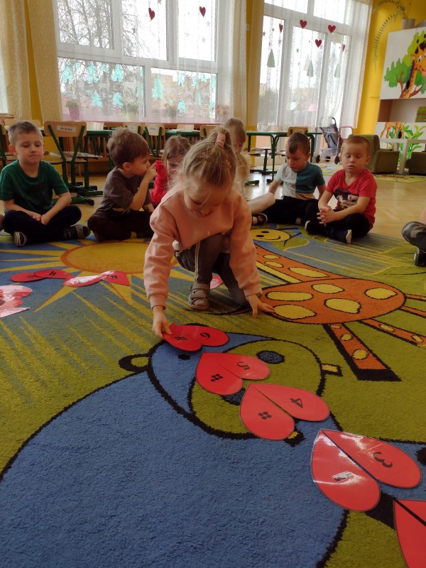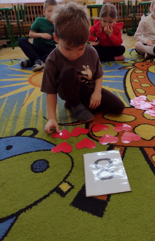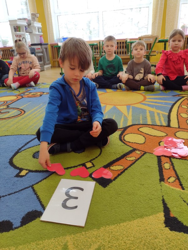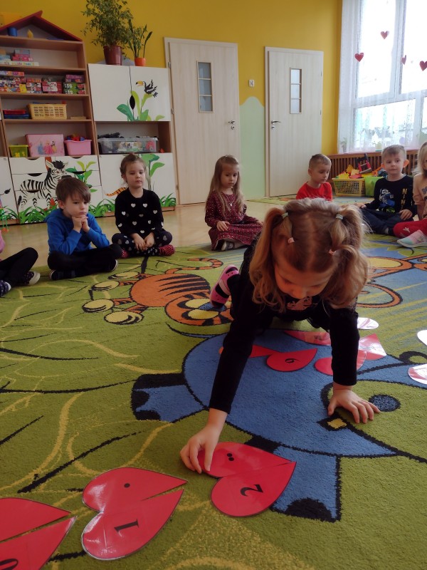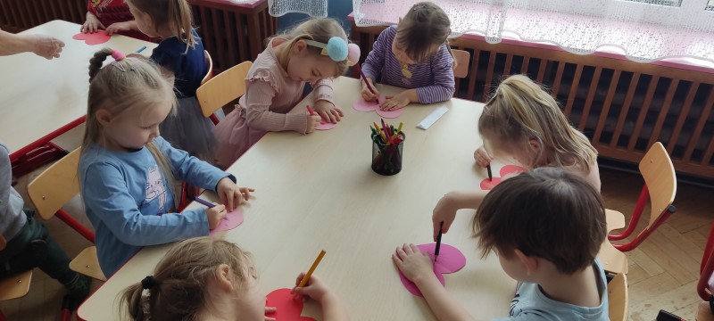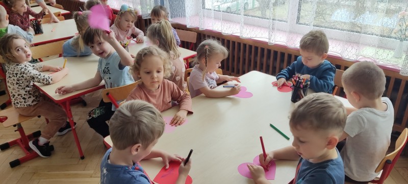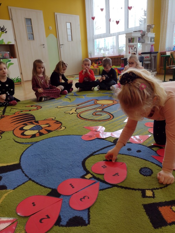 W naszym przedszkolu każda grupa świętowała we własnym gronie. Dzieci wzięły udział w różnych zabawach związanych z Walentynkami, m. in. szukały drugiej połówki serca oraz układały odpowiednią ilość serduszek, doskonaląc przy tym umiejętności matematyczne, bawiły się podczas zajęć ruchowych do piosenki "Walentynka".Było też walentynkowe kodowanie na dywanie. Wykonały również pracę plastyczną – „Najpiękniejsze serduszko walentynkowe” oraz laurki, które następnie wręczyły swoim kolegom i koleżankom z grupy. Na zakończenie dzieci z gr. III zjadły pyszne lizaczki w kształcie serduszek przyniesione przez Wiktorię. Dzisiejszy dzień dostarczył wszystkim wiele radości i emocji.