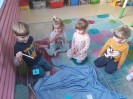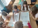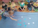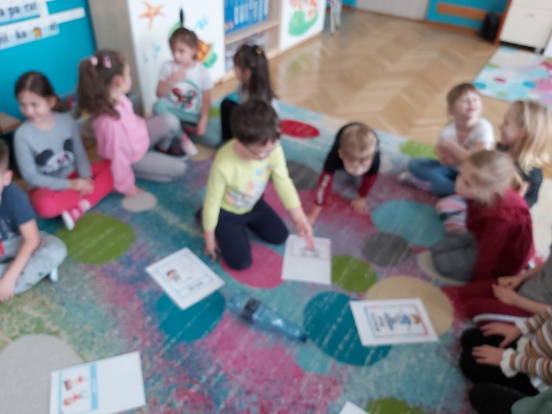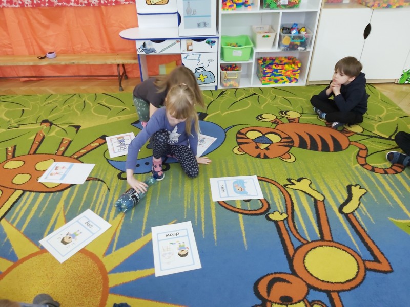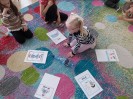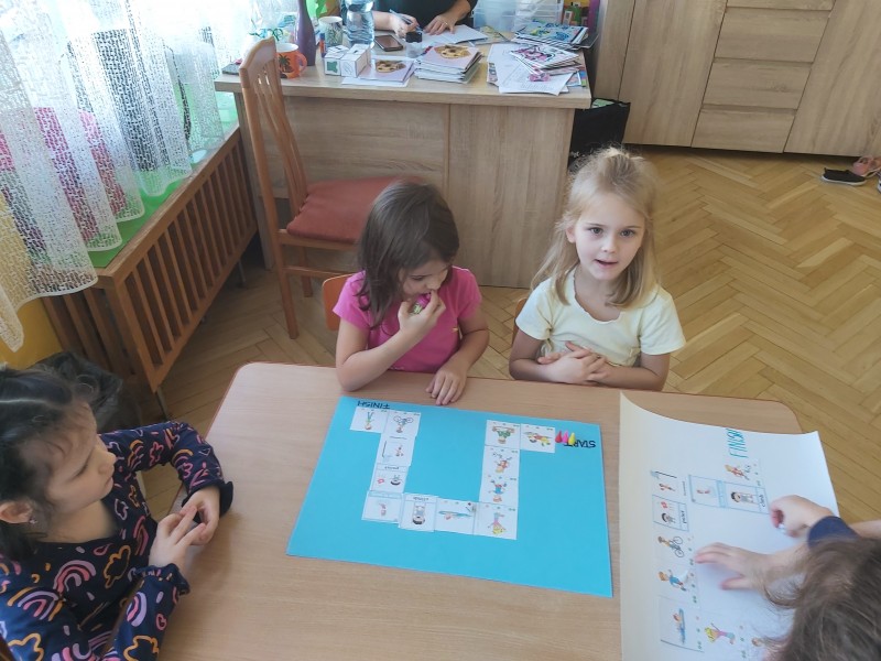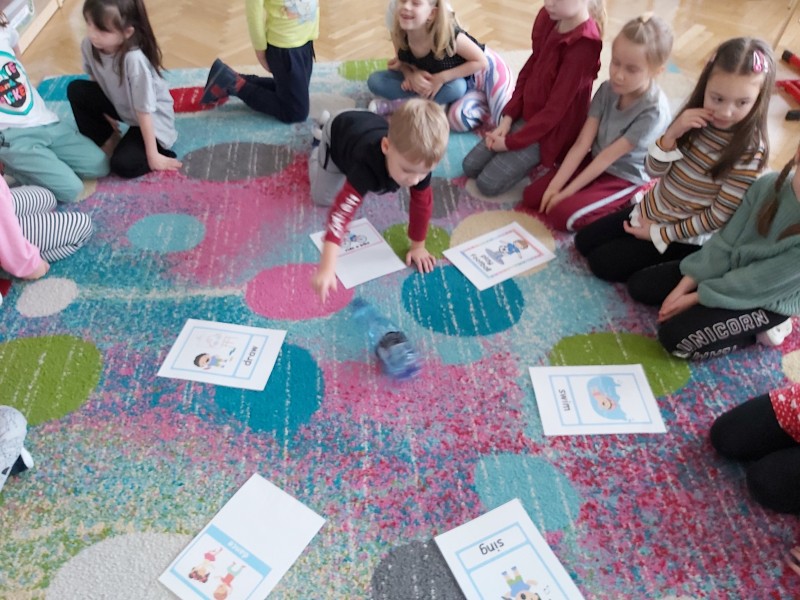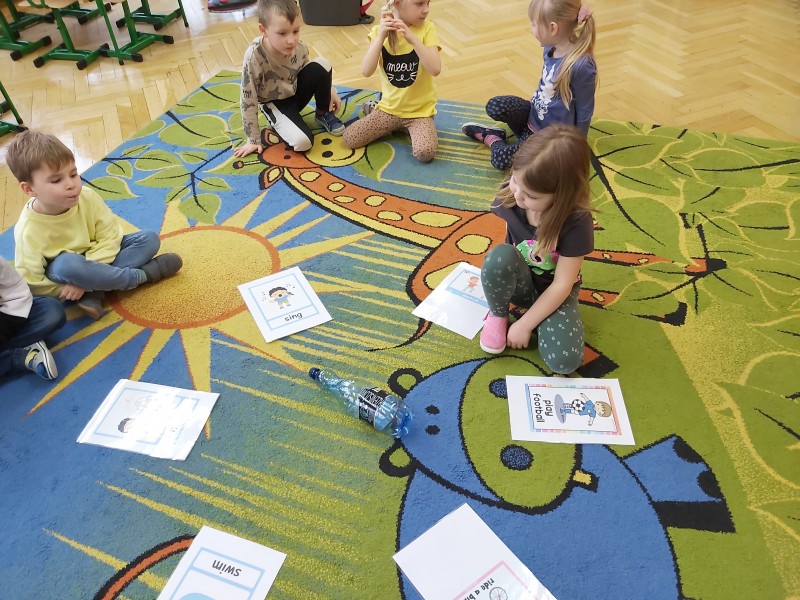 Po feriach angielski przywitał nas słownictwem związanym z ruchem - action verbs, jak np.: swim, play football, draw, ride a bike, dance, sing, jump, run, play basketball, paint . Dzieci miały możliwość ćwiczyć poznane słownictwo z muzyką, ruchem całego ciała, grami planszowymi i kartami obrazkowymi.