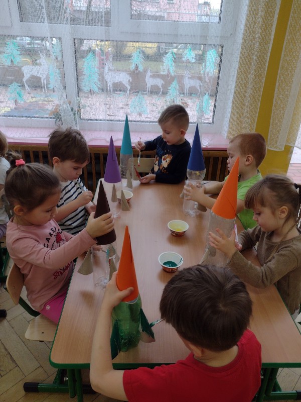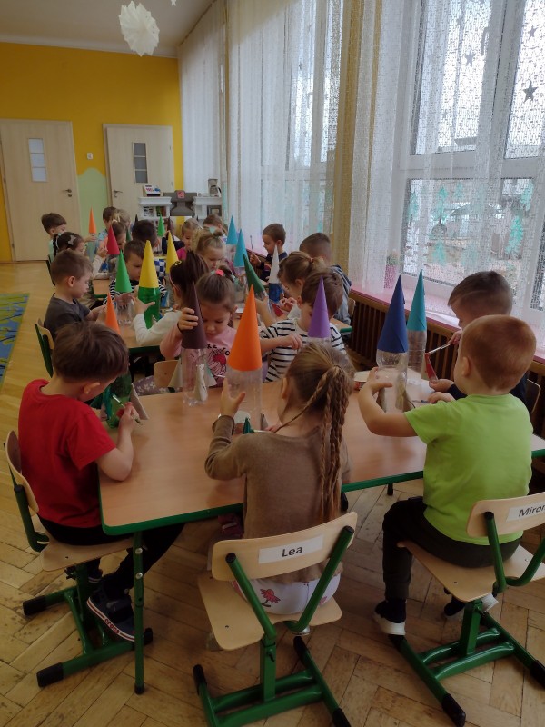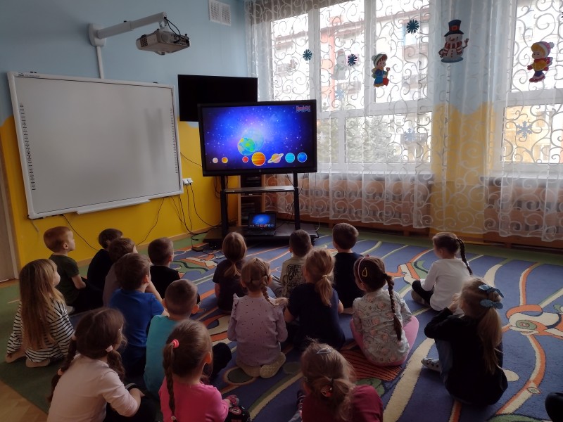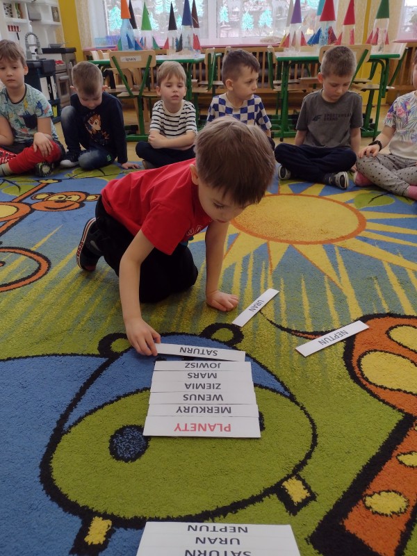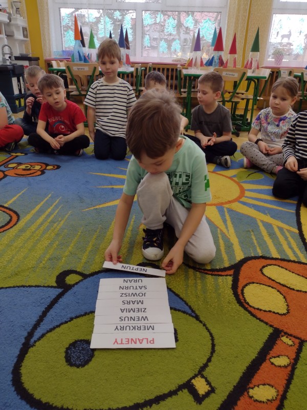W tym tygodniu szukaliśmy odpowiedzi na pytania: Czym jest kosmos? Jak wygląda? Gdzie on jest? Bawiąc się i ucząc, poznaliśmy planety Układu Słonecznego. Obejrzeliśmy film edukacyjny dzięki, któremu wiemy już, że Ziemia cały czas krąży wokół Słońca. W czasie tego tygodnia nie zabrakło również kosmicznych zabawach ruchowych, śpiewania piosenek, nauki wierszyka o planetach oraz kart pracy utrwalających nabyte wiadomości. Na zajęciach plastycznych wykonaliśmy rakiety kosmiczne z butelek plastikowych oraz rolek po papierze. To był tydzień wspaniałych wrażeń i mnóstwa nowych doświadczeń.