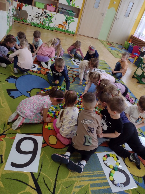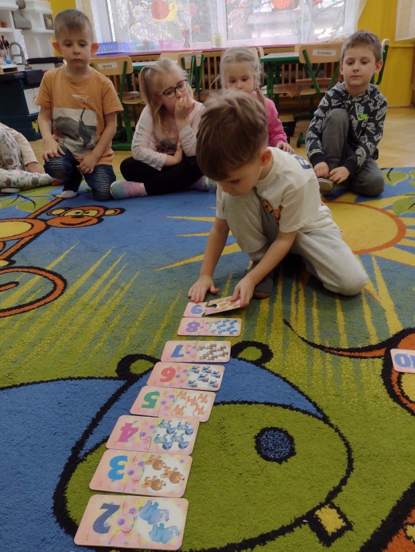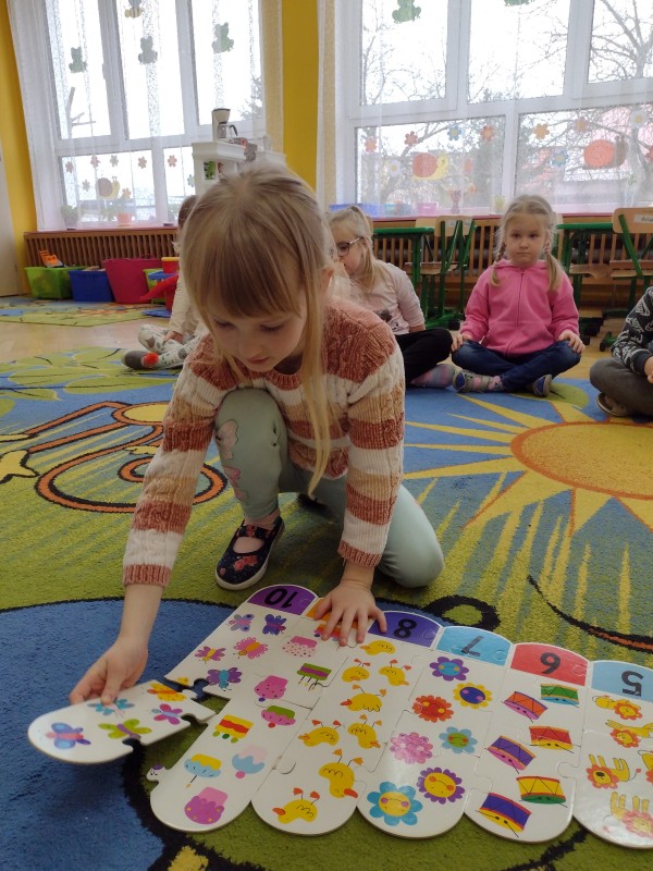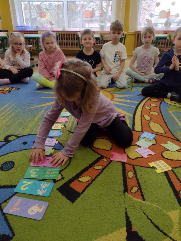 Dzień Matematyki obchodziły również przedszkolaki z grupy II i IV. Z tej okazji brały udział w grach i zabawach kształtujących kompetencje matematyczne. Wszystkie zadania, które wykonywały dzieci miały na celu pokazanie im, że matematyka może być ciekawa i przyjemna.