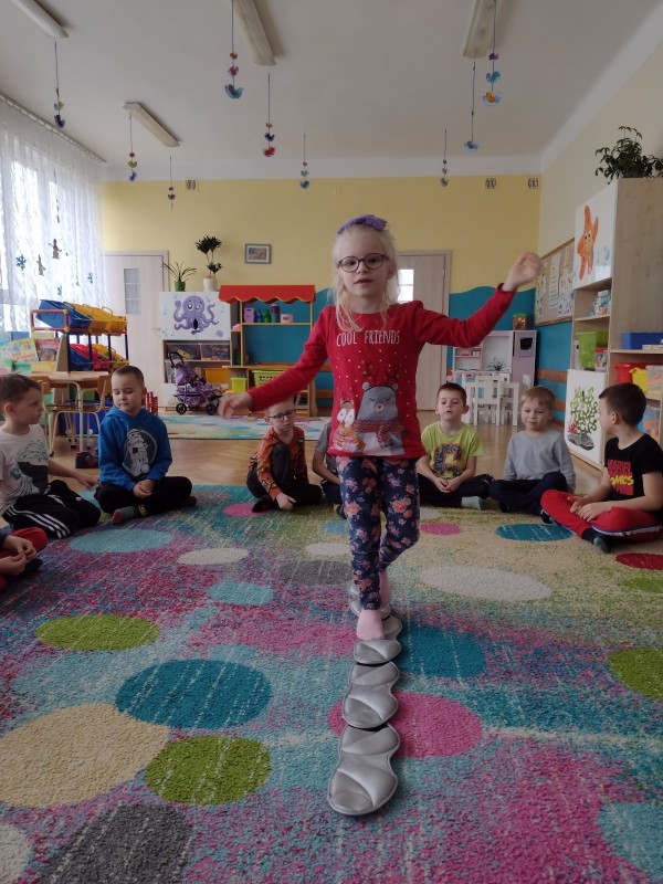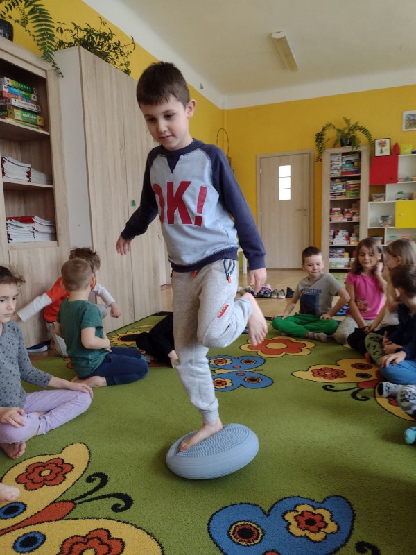 Gimnastyka korekcyjna jest formą ćwiczeń fizycznych, w których ruch został podporządkowany celom terapeutycznym, a stosowane ćwiczenia mają doprowadzić przede wszystkim do korekcji postawy ciała. W przedszkolu ma ona na celu: działanie profilaktycznie, eliminowanie wad postawy, kształtowanie nawyku prawidłowej postawy oraz zapewnienie wszechstronnego rozwoju fizycznego. W grupie II, IV i V podczas ćwiczeń korekcyjnych, dzieci odkrywają różnice pomiędzy postawą prawidłową a nieprawidłową, poznają właściwe pozycje do zabaw i odpoczynku, wzmacniają mięśnie posturalne odpowiedzialne za prawidłową postawę - głównie mięśnie grzbietu i brzucha, stabilizujące kręgosłup. Ważna jest również profilaktyka występowania wad kończyn dolnych, głównie płaskostopia poprzez wzmacnianie mięśni podeszwowych stopy.