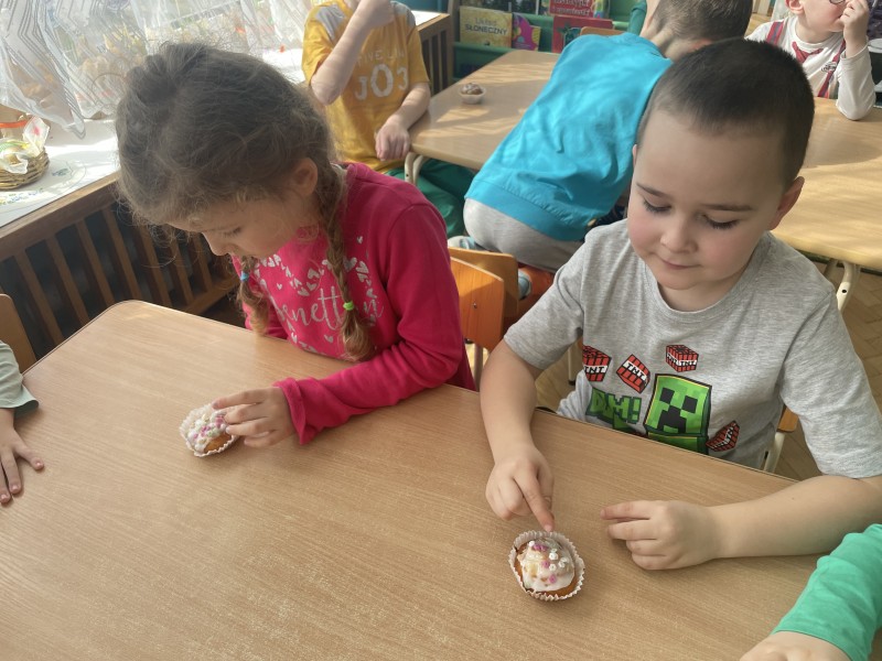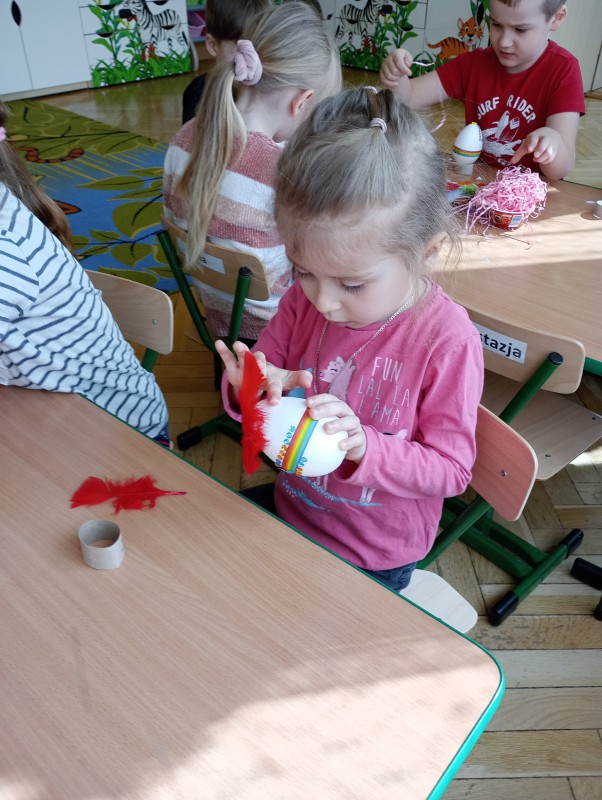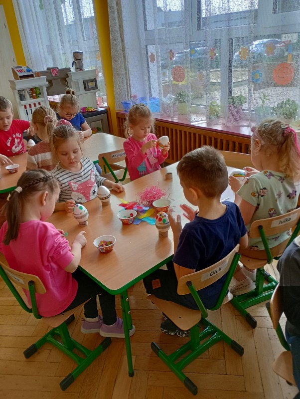 W ślad za swoimi młodszymi kolegami poszły też przedszkolaki z pozostałych grup w naszym przedszkolu. Każda grupa również na swój sposób przygotowuje się do Świąt Wielkanocnych.