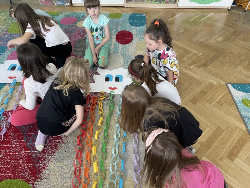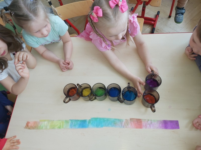W środę 3 kwietnia dzieci z naszego przedszkola obchodziły Dzień Tęczy. Tego dnia przedszkolaki przyszły ubrane w tęczowe kolory. Podczas tęczowego dnia dowiedziały się jak powstaje tęcza, jak kolory są w niej ułożone i który z nich jest najważniejszy. Wykonały bardzo ciekawe, tęczowe eksperymenty oraz brały udział w tęczowych zabawach. Dzieci wykonały własnoręcznie prace plastyczne związane z tematyką tego święta. Głównym celem tych zajęć było utrwalenie nazw kilku kolorów wchodzących w skład barw znajdujących się na tęczy.