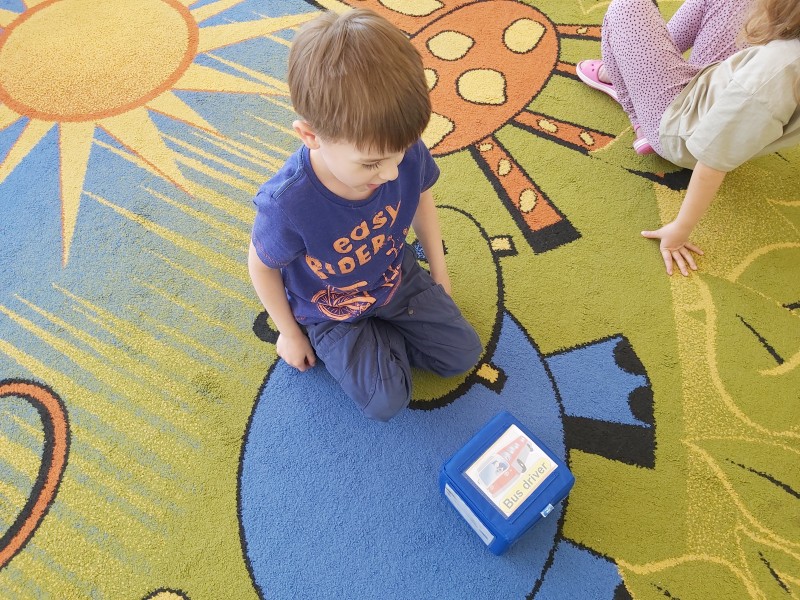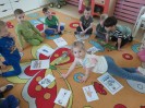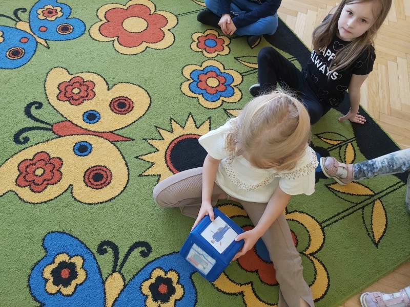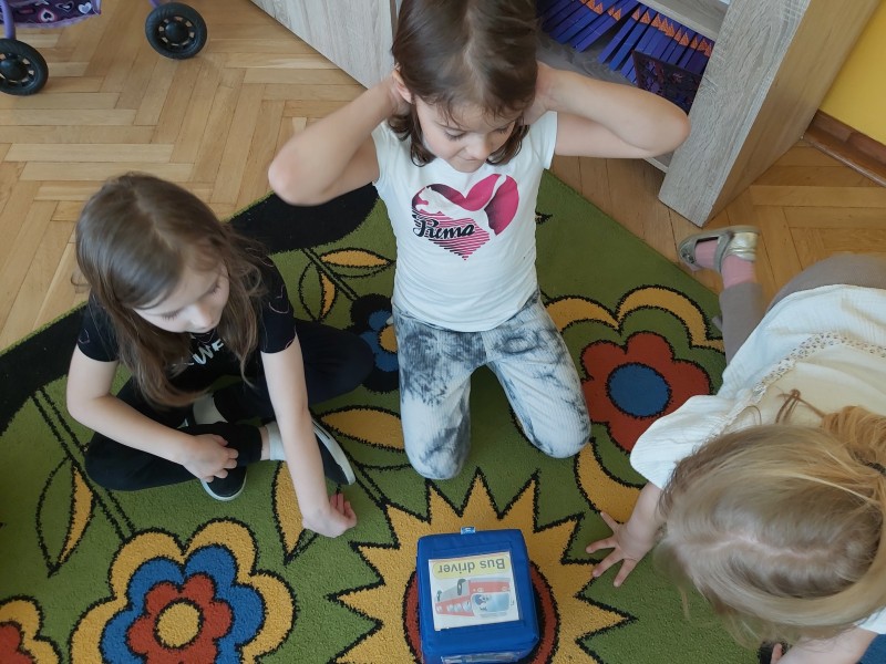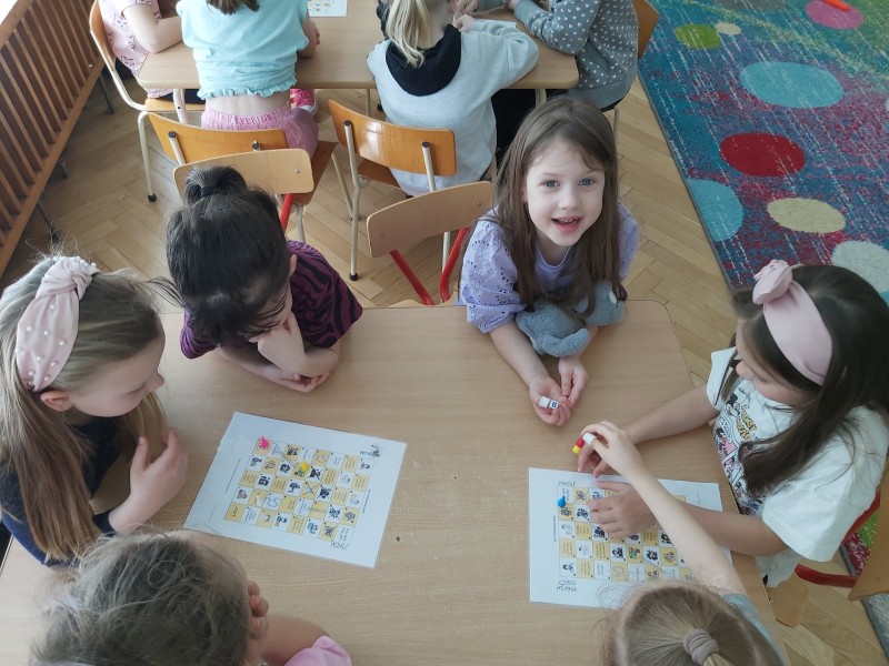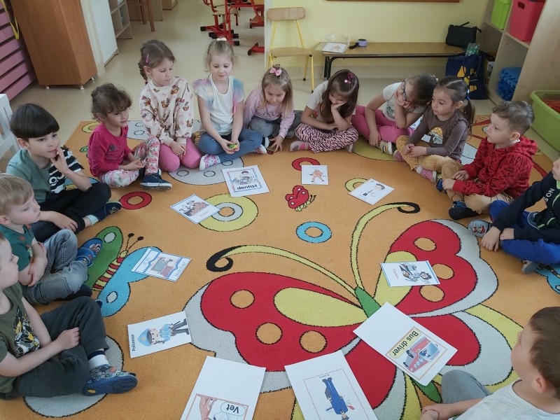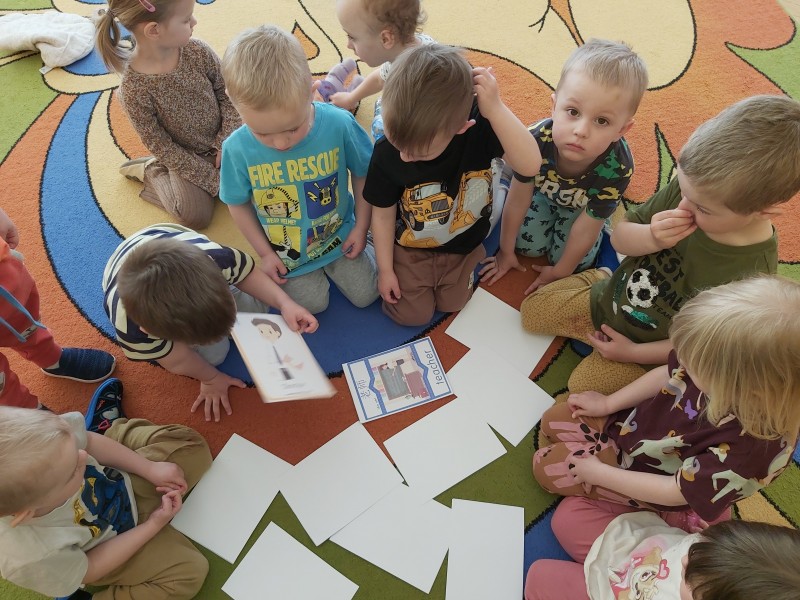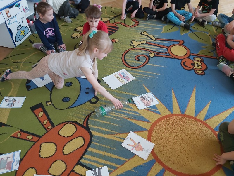 Na pierwszych kwietniowych zajęciach z języka angielskiego rozmawialiśmy "What happens in spring" (In Spring nature wakes up, plants grow, the grass is green, flowers bloom, the days are long, Bears wake up from hibernation, ladybugs are all around, bees collect pollen and nectar, birds builds nests, snails come out, birds sings... i wiele innych). W drugim tygodniu kwietnia dzieci poznały nazwy zawodów (jobs, occupations) - a doctor, a builder, a dentist, a driver, a teacher, a policeman, a firefighter, a dancer, a singer, a vet, a pilot. Dzieci próbowały również odpowiedzieć na pytanie What do you want to be in the future?