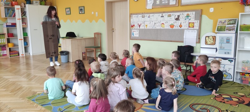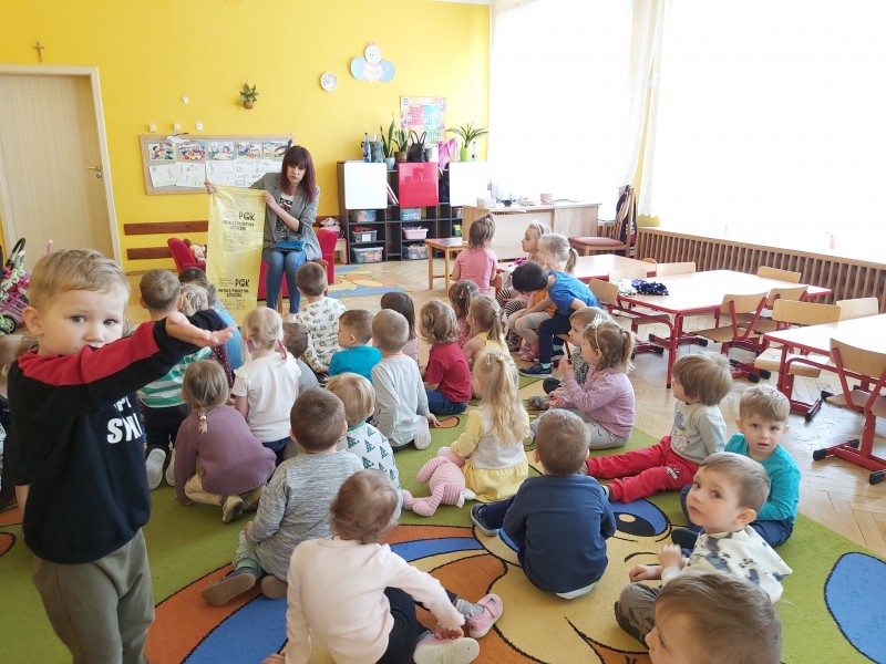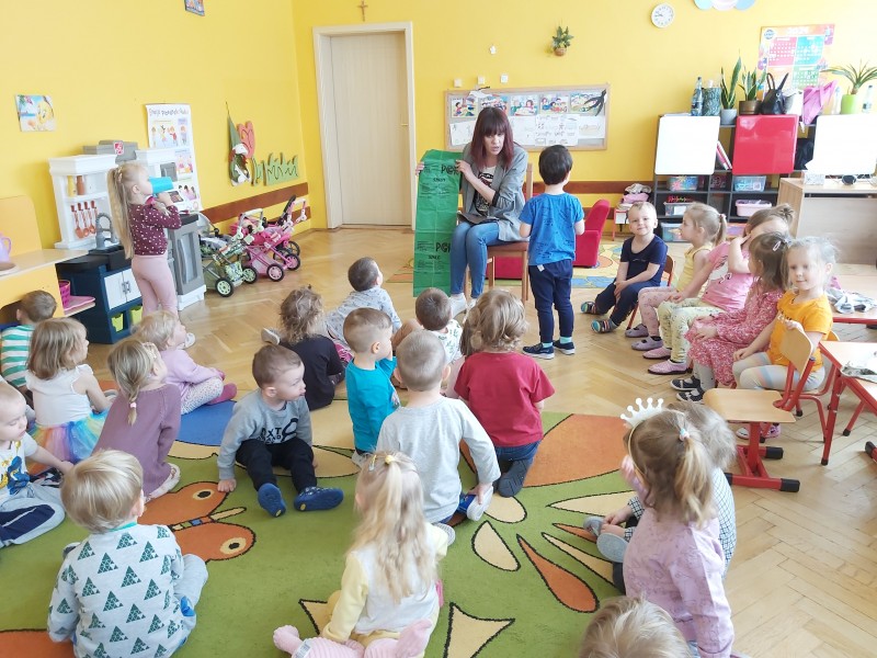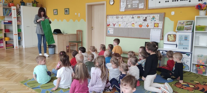 W dniu dzisiejszym nasze przedszkole odwiedziła pani Ekolog. Rozmawiała z dziećmi o sposobach ochrony środowiska . Zaprezentowała dzieciom kolorowe worki do segregacji odpadów. Przedszkolaki chętnie dzieliły się wiedzą na temat segregacji. Opowiadały jak razem z rodzicami dbają o nasze otoczenie. Doskonale wiedziały który worek do czego służy. Pani Ekolog była pod wrażeniem wiedzy dzieci. Tak trzymać przedszkolaki!