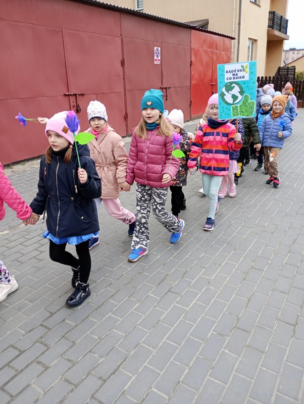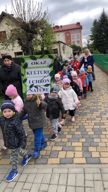 W tym dniu wszystkie grupy przedszkolne wyruszyły na marsz promujący ochronę środowiska naturalnego. Wcześniej poprzez zabawę poznały możliwości ochrony naszej planety (np. potrzebę segregowania śmieci, sposoby wykorzystania energii odnawialej, itp.). Wykonały również prace plastyczne i plakaty o tematyce ekologicznej.