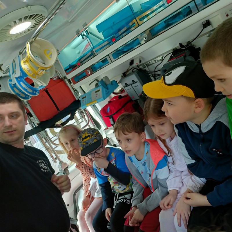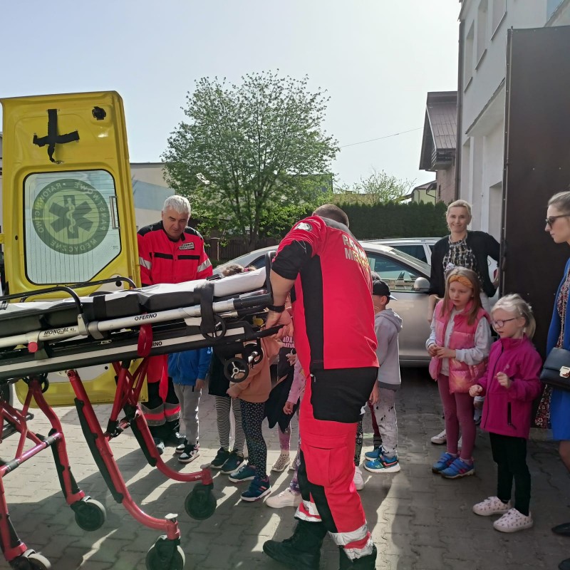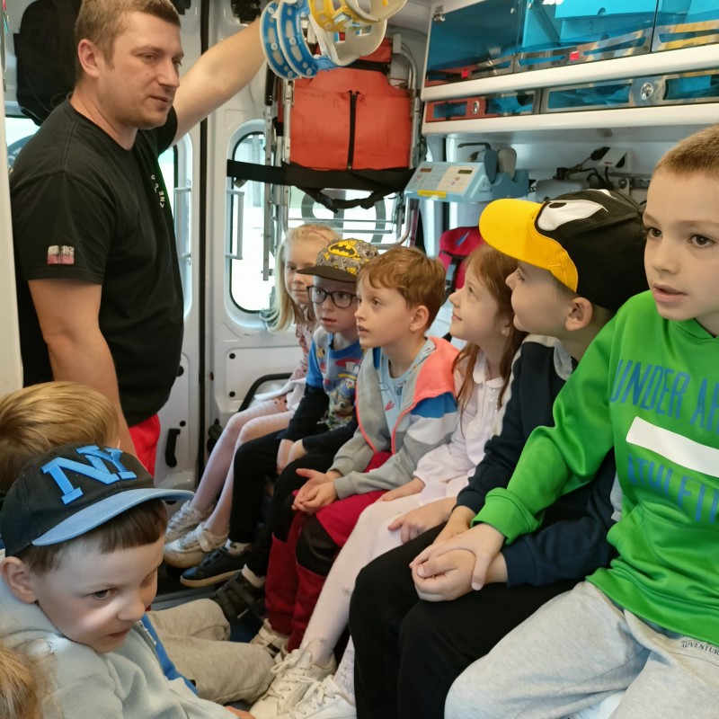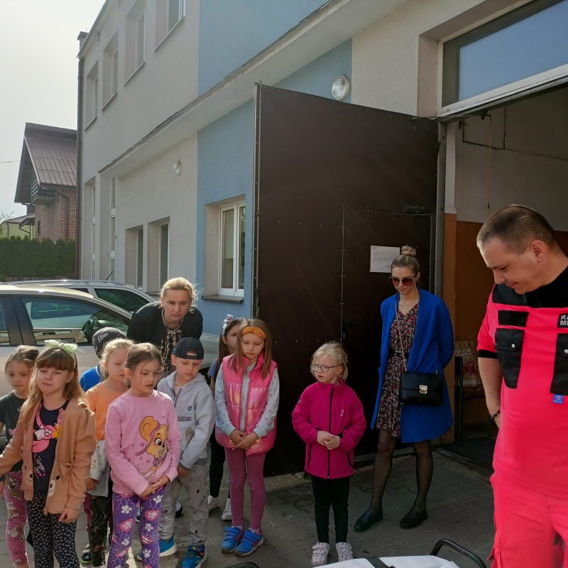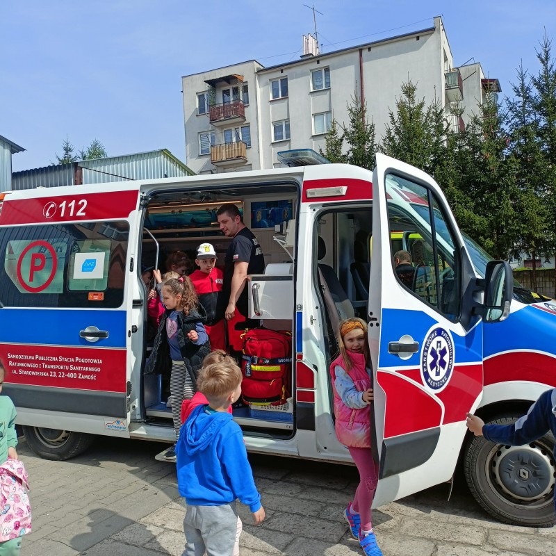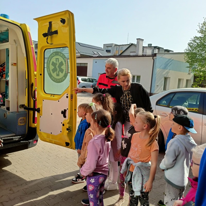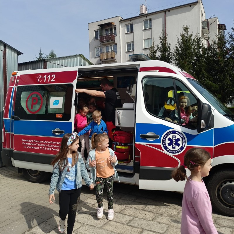 10 kwietnia starszaki z grupy IV uczestniczyły w edukacyjnej wycieczce do Pogotowia Ratunkowego w Biłgoraju. Dowiedziały się jak wygląda i na czym polega praca ratowników medycznych, pielęgniarek i lekarzy zatrudnionych w Pogotowiu Ratunkowym. Poznały wyposażenie karetki i sposób działania niektórych urządzeń medycznych, wykorzystywanych do ratowania zdrowia i życia chorych ludzi.