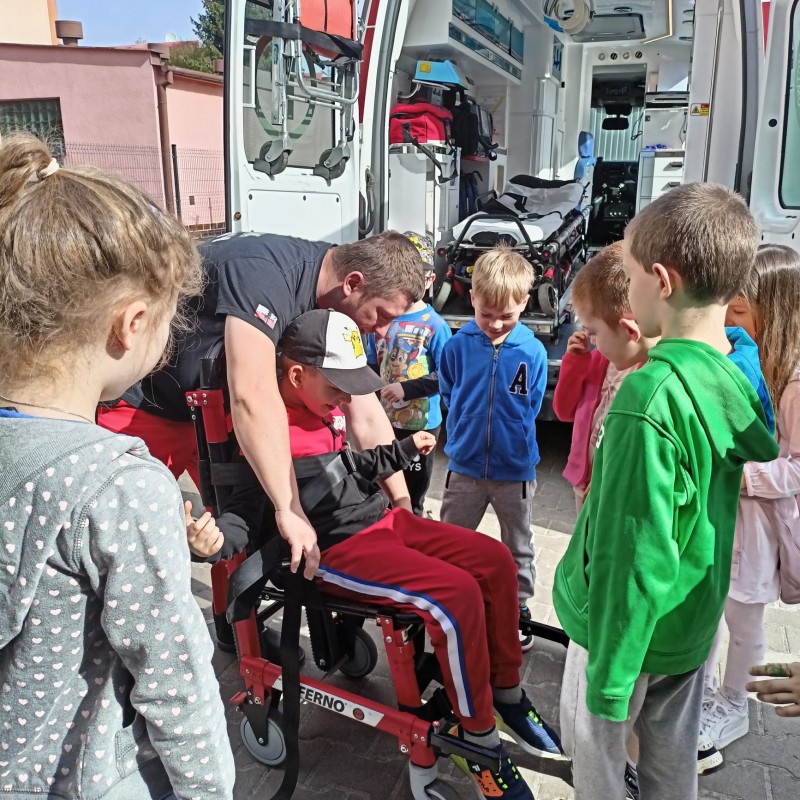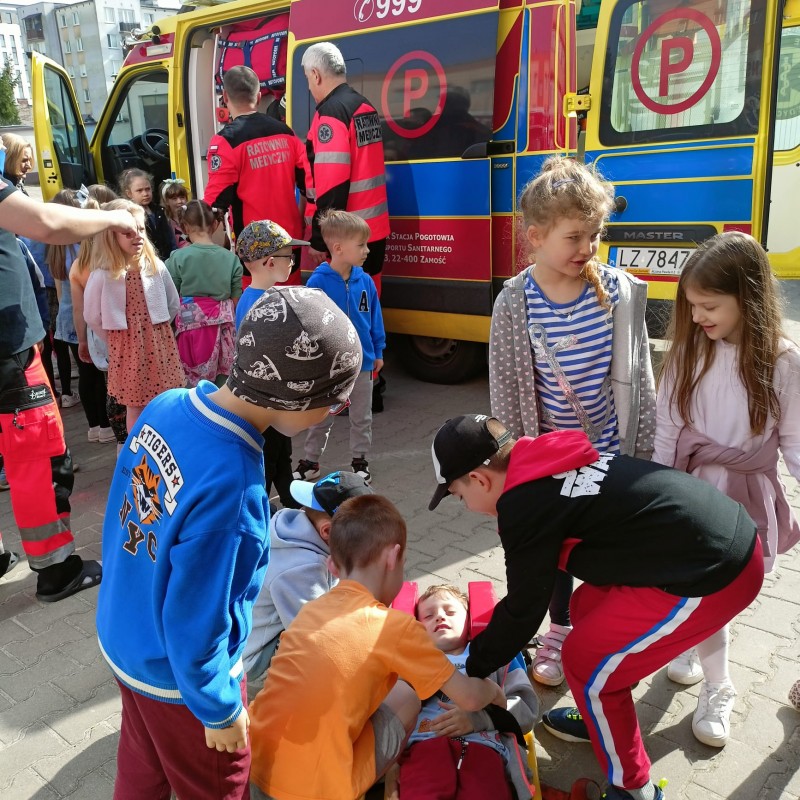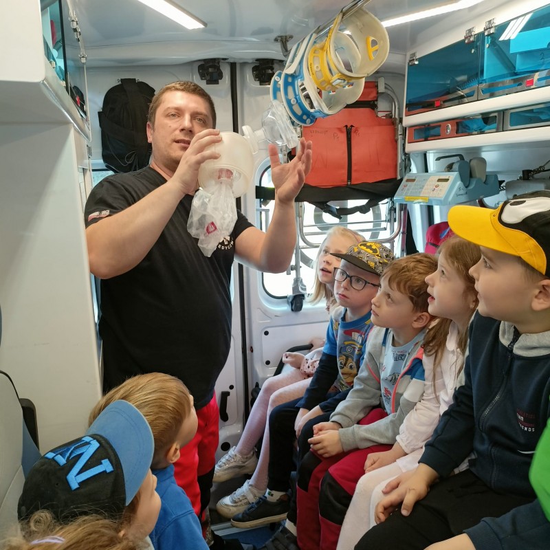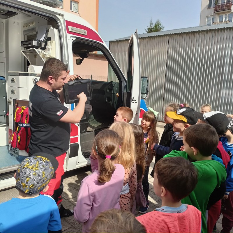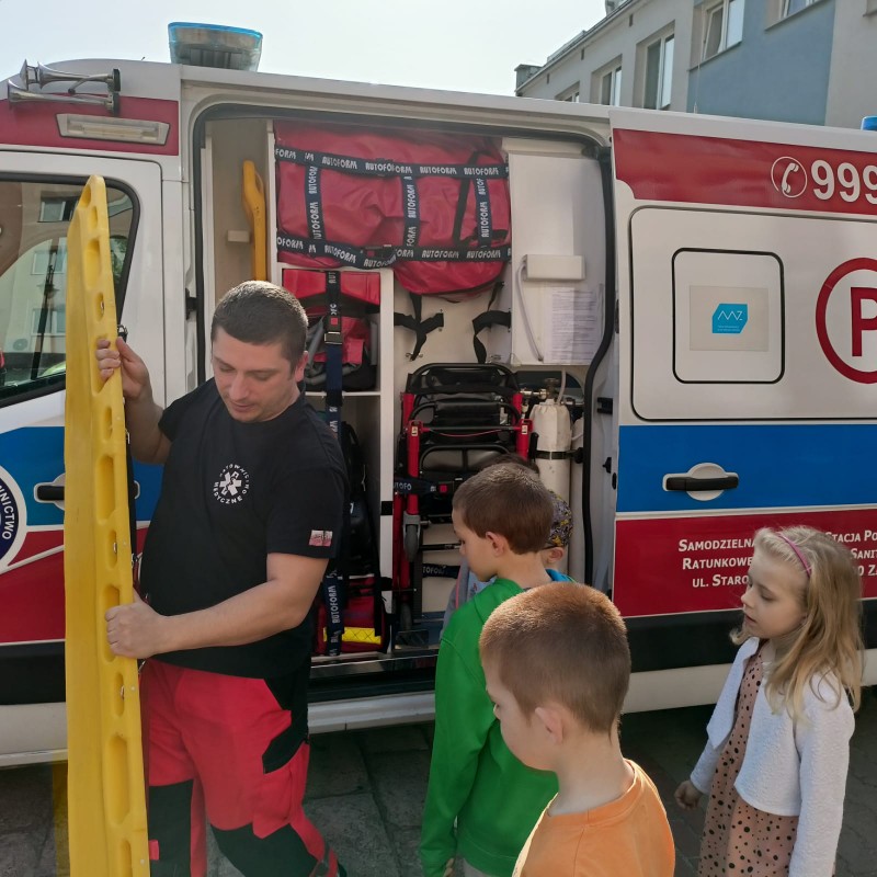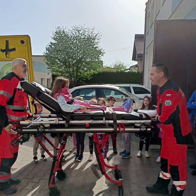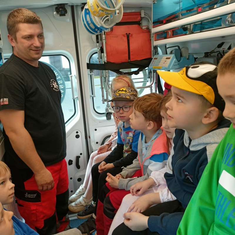 10 kwietnia starszaki z grupy IV uczestniczyły w edukacyjnej wycieczce do Pogotowia Ratunkowego w Biłgoraju. Dowiedziały się jak wygląda i na czym polega praca ratowników medycznych, pielęgniarek i lekarzy zatrudnionych w Pogotowiu Ratunkowym. Poznały wyposażenie karetki i sposób działania niektórych urządzeń medycznych, wykorzystywanych do ratowania zdrowia i życia chorych ludzi.