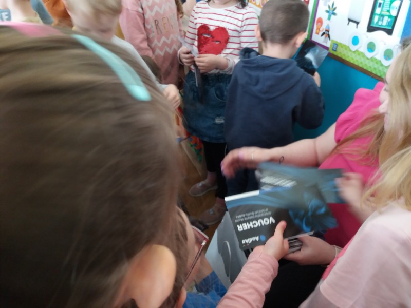 We wtorek 23 kwietnia starszaki z grup IV i V brały udział w zajęciach przeprowadzonych w naszym przedszkolu przez pracownika firmy Audica zajmujacej się badaniem zaburzeń słuchu. Dzieci dowiedziały się jakie części organizmu człowieka biorą udział w rozpoznawaniu dźwięków i jakie znaczenie dla funkcjonowania człowieka ma prawidłowy słuch. Otrzymały na pamiątkę drobne uponinki i i kolorowanki.