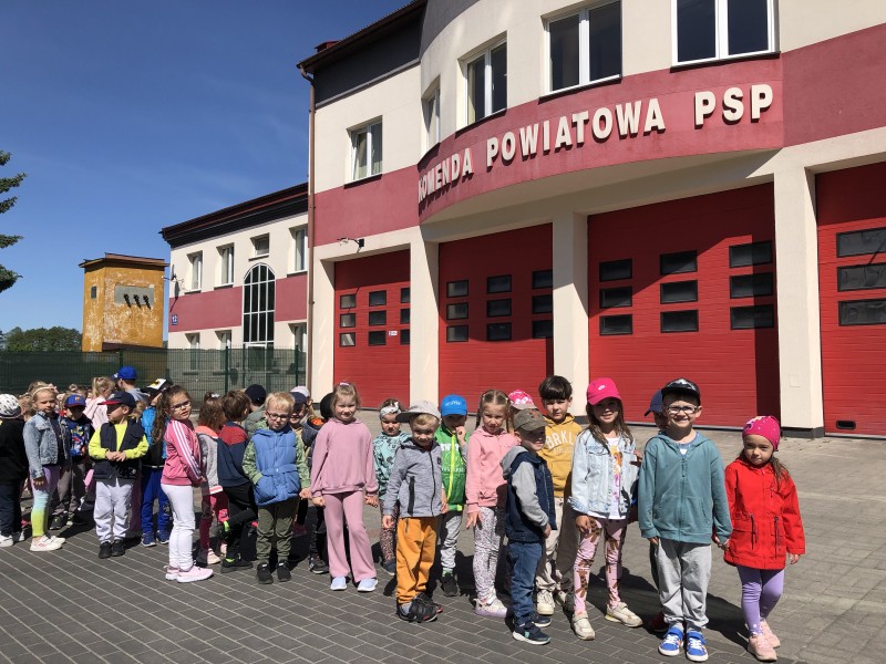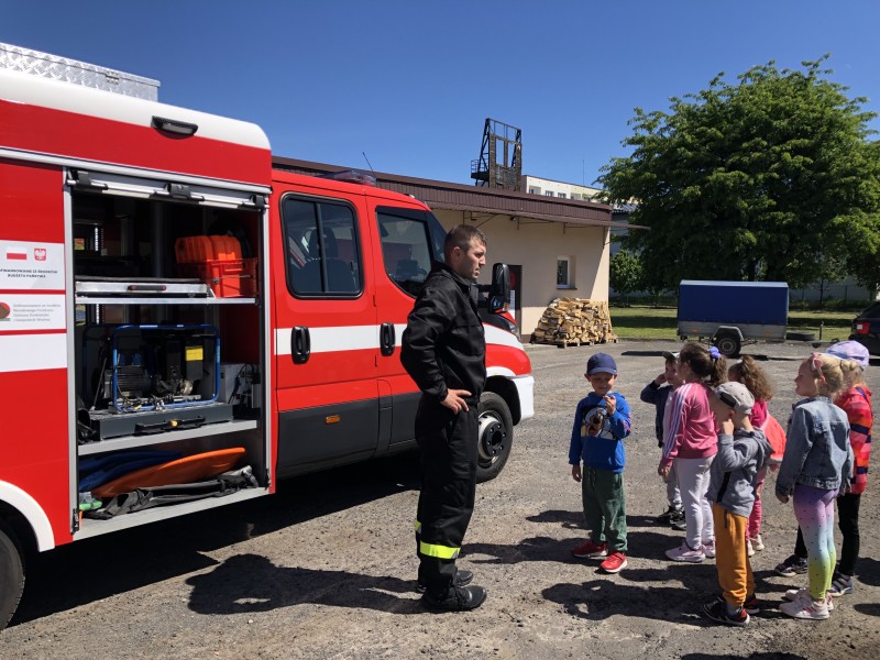 W poniedziałek 13.05.2024r. dzieci z gr. II i Gr. VI odbyły wycieczkę do Powiatowej Straży Pożarnej w Biłgoraju. Celem wycieczki było: zapoznanie z pracą strażaka, wzbogacenie wiedzy przedszkolaków na temat bezpiecznego zachowania w różnych sytuacjach. W siedzibie dzieci zostały przywitane przez pełniących dyżur strażaków, którzy zapoznali dzieci z samochodami do różnych zadań i ich wyposażeniem. Zaprezentowali działanie wybranych urządzeń i specjalistycznego sprzętu. Umożliwili dzieciom wejście do wozu strażackiego oraz urządzili dla nich pokaz zjeżdżania po rurze strażackiej czy sposób ubierania się strażaka do wyjazdu do akcji ratunkowej. Dzieci były bardzo zainteresowane tym co miały okazję zobaczyć i usłyszeć.