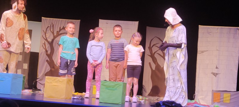 W środę 15.05.2024r. dzieci z grupy II, IV i V obejrzały spektakl ekologiczny pt. "Drzewo życia" w Biłgorajskim Centrum Kultury wykonany przez Aktorów Krakowskiego Biura Promocji Kultury. Spektakl opowiada o losach starej Gazety Emilii, pieska Rysia, potworze Gałganie oraz mądrym Drzewie Życia. Widzowie uczą się, jak ważne jest dbanie o środowisko naturalne i naszą planetę. Przybliża im się pojęcia takie jak recykling i segregacja odpadów. Przedstawiane są konsekwencje zanieczyszczeń powietrza i wody oraz ich wpływ na zdrowie ludzi, zwierząt i roślin. Znakomita gra aktorska sprawiły , że nauka ekologii okazała się znakomitą zabawą.
