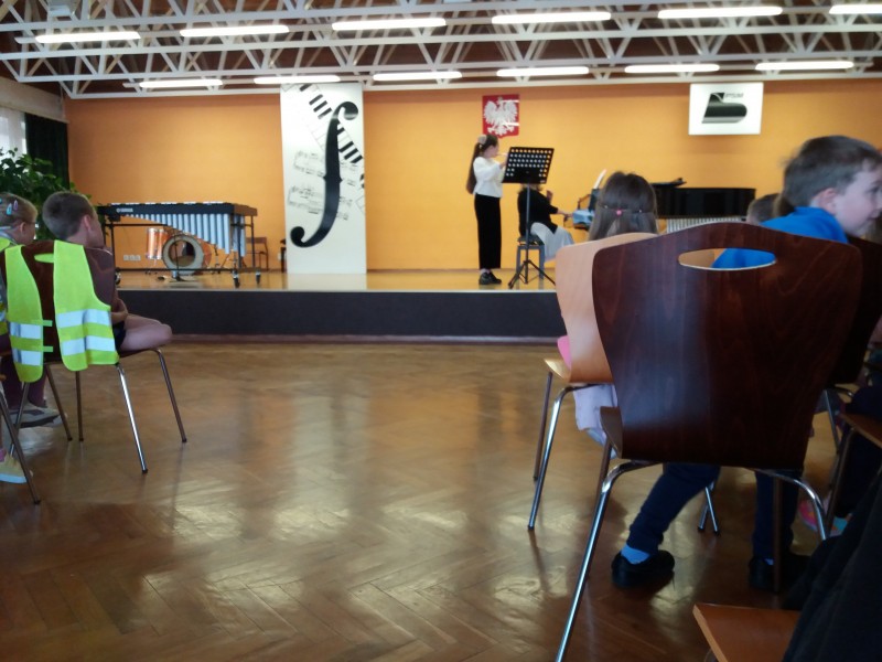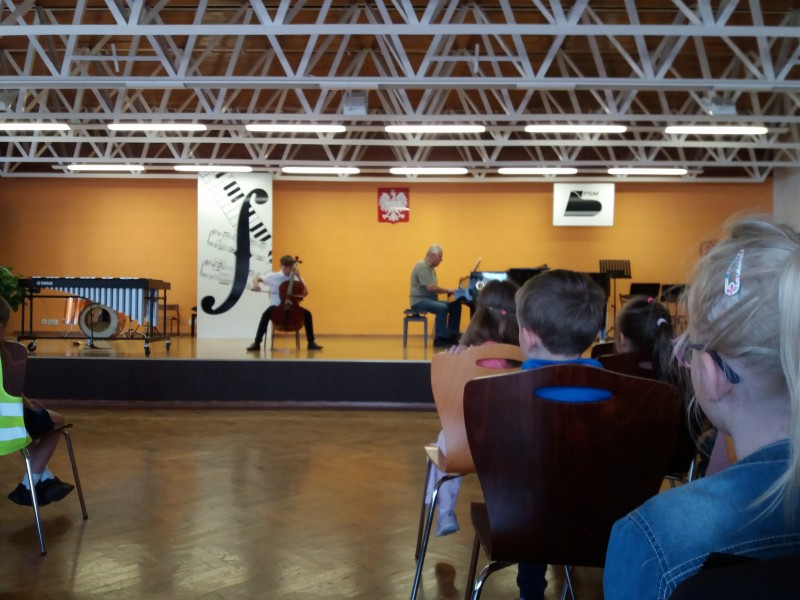 W piątek 17 maja starszaki z grup IV i V wybrały sie na koncert do Szkoły Muzycznej w Biłgoraju. Koncert przygotowany był przez uczniów i nauczycieli Szkoły Muzycznej. Dzieci poznały wybrane instrumenty muzyczne i z uwagą słuchały utworów muzycznych w wykonaniu młodych artystów. Dowiedziały się, że sami mogą też zostać uczniami szkoły muzycznej.