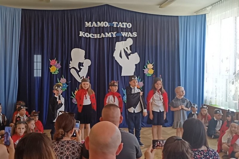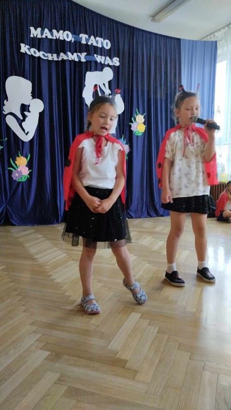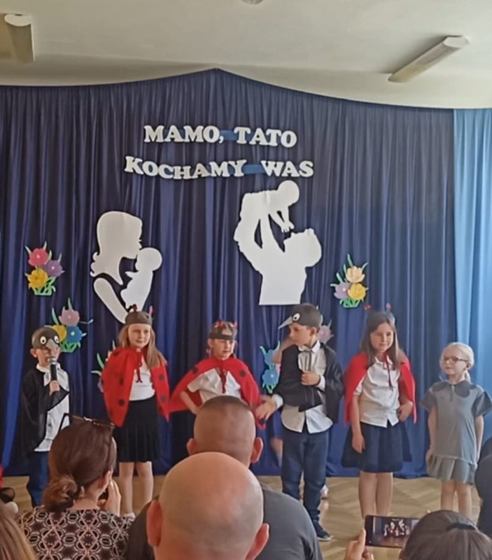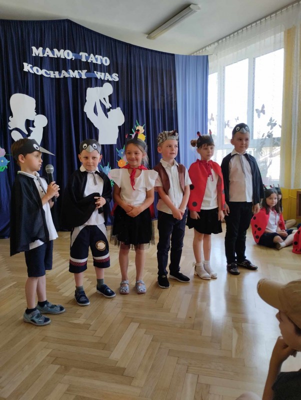 W piątkowe popołudnie starszaki z grupy IV gościły w przedszkolu swoich rodziców. Z okazji Dnia Mamy i Taty wykonały dla rodziców przedstawienie słowno - muzyczno - taneczne pod hasłem "MAMO I TATO, KOCHAMY WAS". Zatańczyły, zaśpiewały, wyrecytowały wiersze. Następnie złożyły życzenia, wręczyły własnoręcznie wykonane upominki - "Kwiaty w wazonie" i poczęstowały słodyczami.