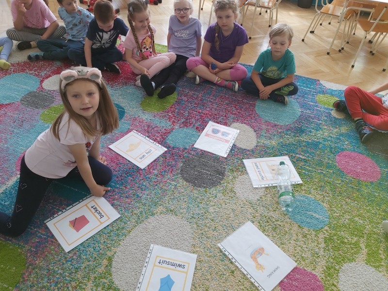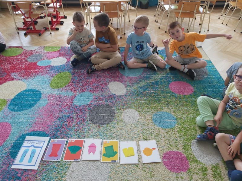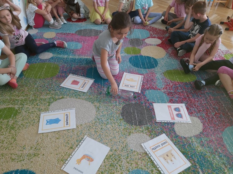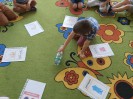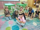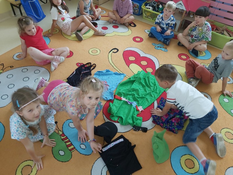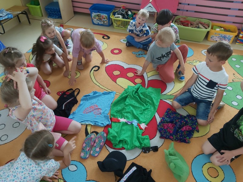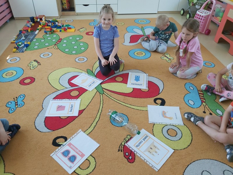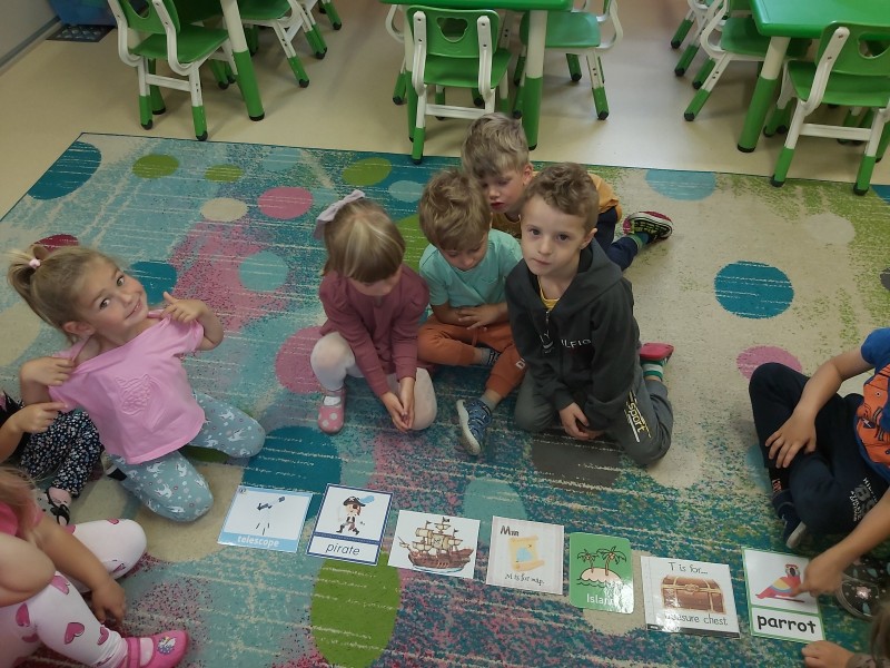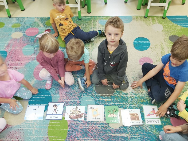 Maj zleciał niesamowicie szybko i intensywnie na zajęciach z języka angielskiego. Dzieci poznawały słownictwo związane z owadami i nie tylko (spider, ant, mosquito, fly, bee, wasp, snail, butterfly, caterpilar, ladybird), jak również utrwaliliśmy sobie słówka związane z przyrodą (leaf, sun, rainbow itp.). Przypomnieliśmy sobie również członków rodziny w zabawach i grach. Natomiast czerwiec przybliża nas do lata, zatem poznajemy letnie ubrania i akcesoria (sunglasses, hat, swim ring, t-shirt, shorts, skirt, dress, flip-flops itp.). Przypomnieliśmy sobie również środki transportu. Wielkim zainteresowaniem cieszyły się zabawy w piratów - tutaj posługiwaliśmy się słowami: pirat, pirat ship, map, Island, treasure chest, parrot, telscope). Zadaniem piratów było również odnalezienie skarbu. Na zajęciach popołudniowych często słuchamy krótkich opowieści ćwicząc rozpoznawanie słownictwa ze słuchu, oraz całych sformułowań, pracujemy z podręcznikiem lub kartami pracy.