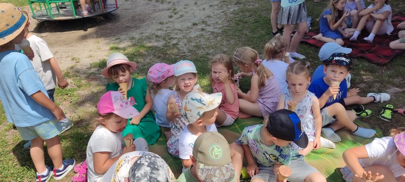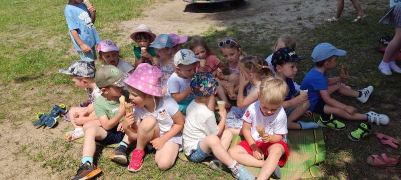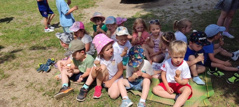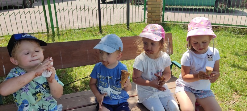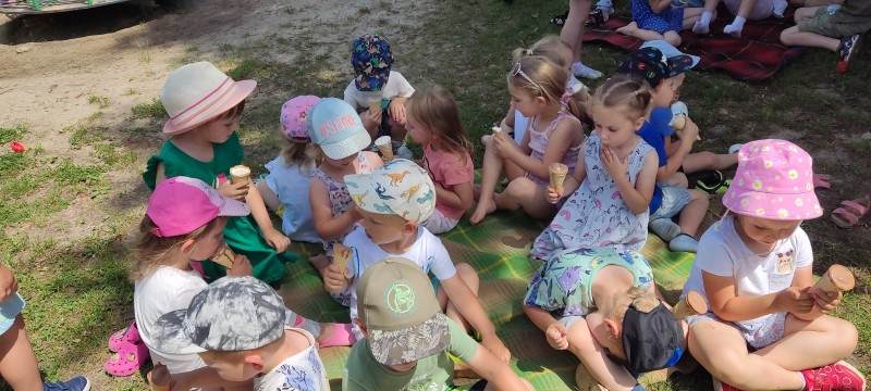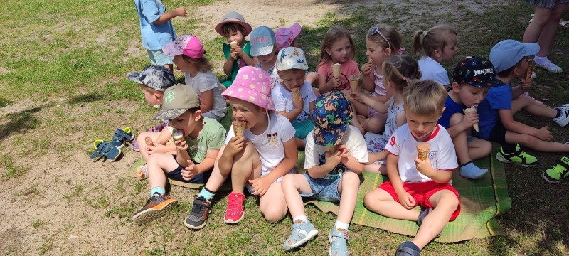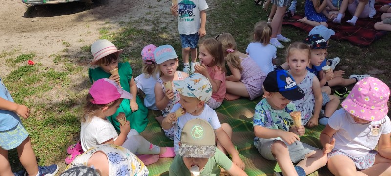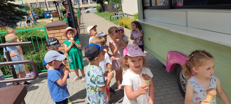 19 czerwca dzięki pomysłowi naszej Rady Rodziców, która była jednocześnie sponsorem tego wydarzenia, do przedszkola przyjechał wóz z lodami. Przedszkolaki mogły wybrać sobie loda spośród dwóch smaków: czekoladowego lub śmietankowego. Otrzymanie loda bezpośrednio od Pani było dla dzieci (szczególnie maluchów) wielką frajdą. Później na kocyku w cieniku lody smakowały wybornie.