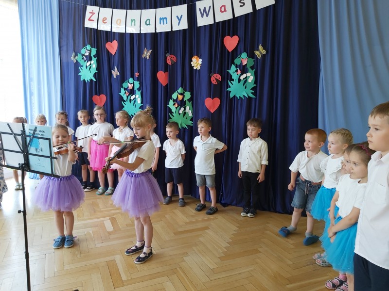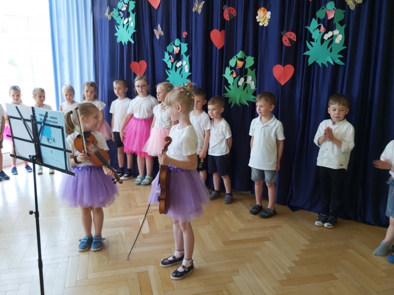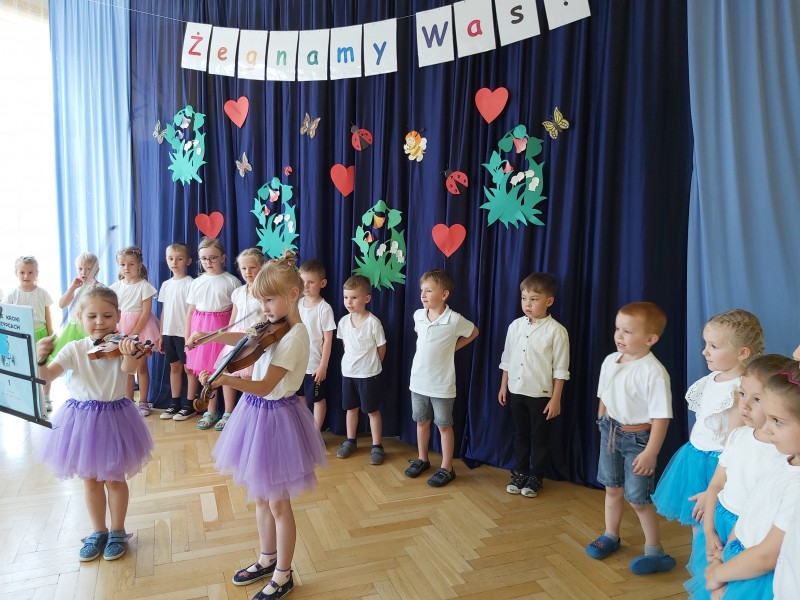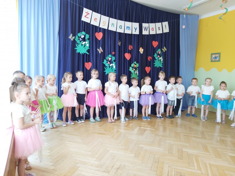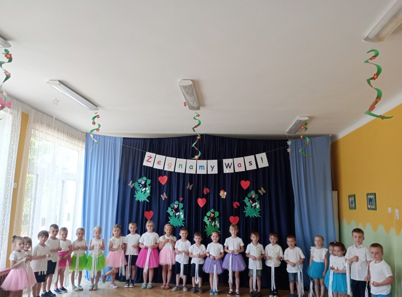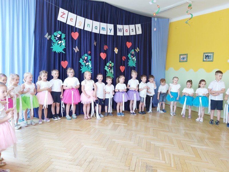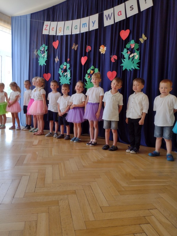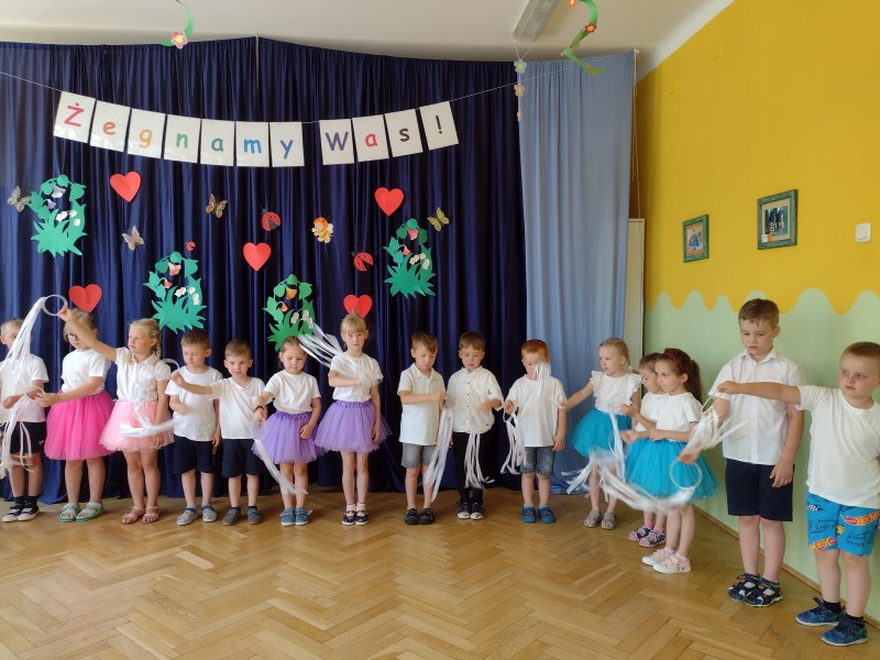 Dziś w naszym przedszkolu odbyło się uroczyste pożegnanie najstarszych przedszkolaków, które od września rozpoczną naukę w szkole. Z tej okazji dzieci śpiewały piosenki, tańczyły oraz recytowały wiersze. Mogliśmy również posłuchać koncertu skrzypcowego w wykonaniu Ani i Ali. Nie zabrakło także życzeń oraz słodkiego poczęstunku.
