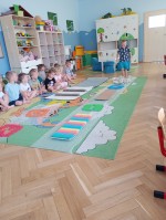 W Grupie Kotki i Rybki odbyły się zajęcia sensoryczne z wykorzystaniem własnoręcznie przygotowanej ścieżki sensorycznej. Zajęcia miały na celu rozwijanie zmysłu dotyku, równowagi oraz integrację dzieci poprzez wspólne działania. Zajęcia rozpoczęły się rozmową o zmysłach i o tym, co możemy poczuć bosymi stopami.