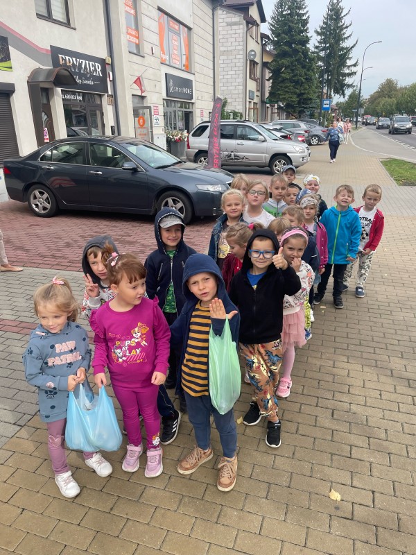 Grupa II zna już zasady kupowania owoców i warzyw na targu. W ramach tygodnia z warzywami i owocami wybrali się na biłgorajski “bazarek”. Zapoznali się z miejscem targowym oraz sposobem kupowania na targu (np jak “utargować” niższą cenę ;)
