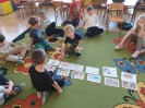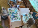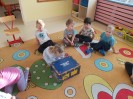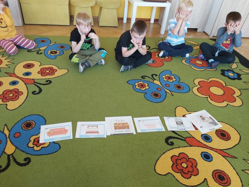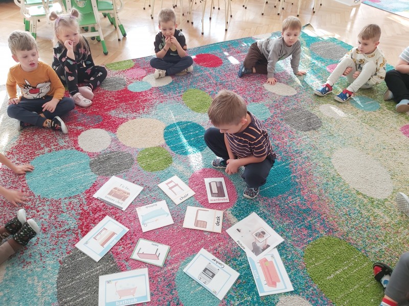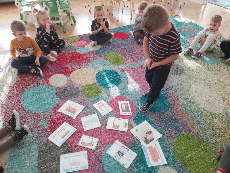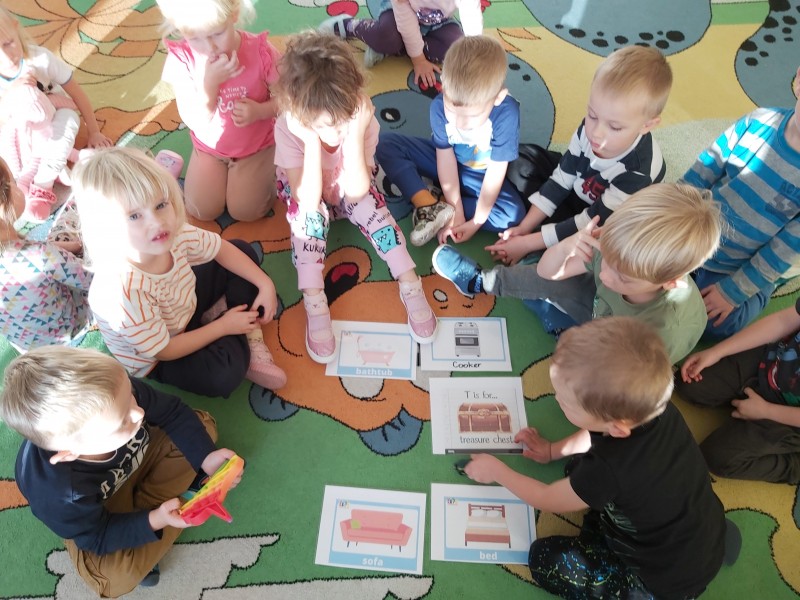 W drugiej połowie października dzieci poznały słownictwo związane z pojazdami - car, bus, airplane, ship, bicycle, motorbike. Były zabawy ruchowe, gry, piosenki ułatwiające zapamiętywanie poznanych słów. Dzieci umieją również opisać wygląd domu oraz pomieszczeń posługując się takim słownictwem, jak: house, window, chimney, door, roof, wall, kitchen, hall, bedroom, bathroom, attic, living room. Rozpoczęliśmy również wyróżniać urządzenia i meble znajdujące się w pomieszczeniach.