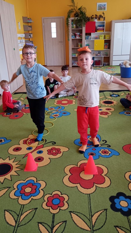 Zajęcia korekcyjne w naszym przedszkolu prowadzone są w formie kreatywnych zabaw ruchowych oraz ćwiczeń z wykorzystaniem różnych przyborów i przyrządów (obręcze, drążki, woreczki, szarfy, krążki, piłki, platformy itp.). Poziom ćwiczeń dostosowywany jest do indywidualnych potrzeb oraz możliwości dzieci. Podczas zajęć skupiamy się na ćwiczeniach kształtujących utrzymanie prawidłowej postawy, rozciągających mięśnie klatki piersiowej oraz wzmacniających mięśnie brzucha, grzbietu i pośladków.