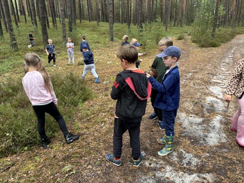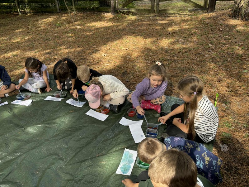 15 września 2025 r. dzieci z gr. V wyjechały do lasu. Nie był to zwykły spacer po lesie lecz bardzo aktywnie spędzony czas w otoczeniu przyrody. Dzieci miały okazję majsterkować z wykorzystaniem drewna, nauczyć się tworzenia naturalnych filtrów do oczyszczania wody, budować szałasy w lesie, eksperymentować z zabarwianiem wody. Były też pieczone kiełbaski i ziemniaki z ogniska oraz wiele swobodnej zabawy na powietrzu. Wszyscy dobrze się bawili.