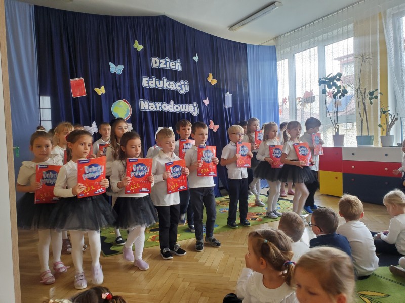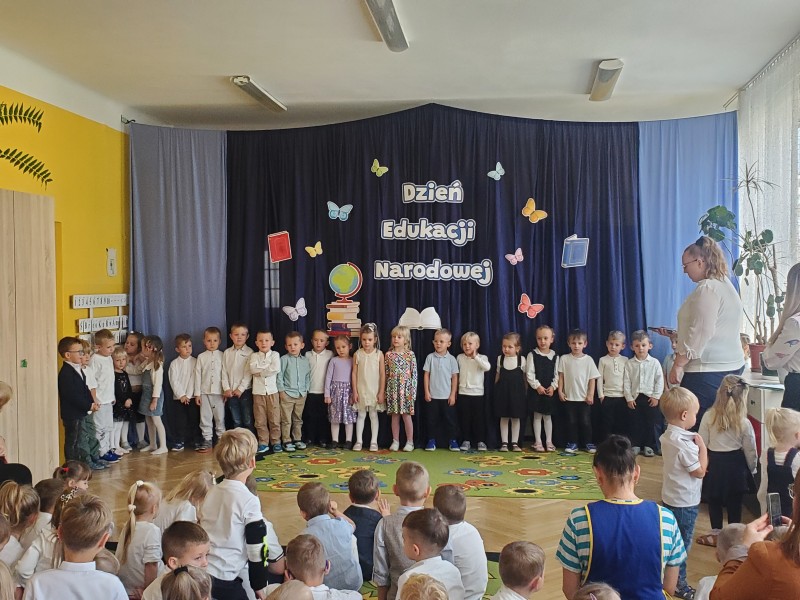 14 października w naszym przedszkolu uroczyście obchodziliśmy Dzień Edukacji Narodowej. Dzieci z każdej grupy zaprezentowały się w pięknych występach. Były piosenki, wiersze, tańce oraz gra na instrumentach. Przedszkolaki z zaangażowaniem przygotowały swoje występy, a na twarzach nauczycieli i pracowników pojawiły się uśmiechy i wzruszenie.