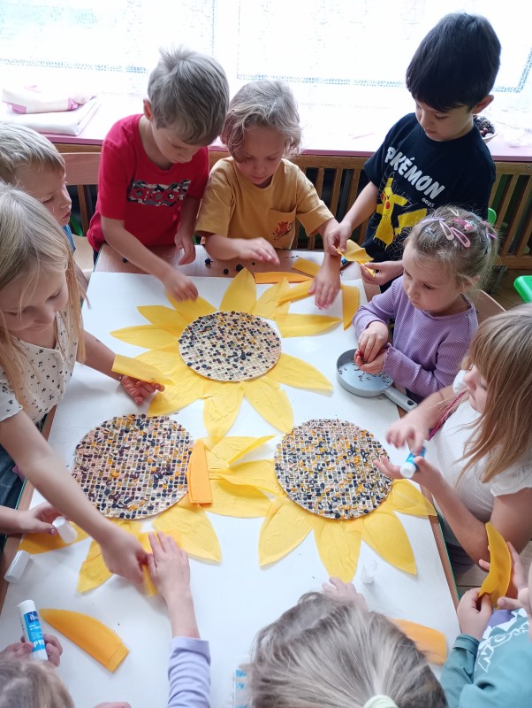 W piątek w naszym przedszkolu odbyła się niezwykła wystawa, której motywem przewodnim były słoneczniki przywiezione przez panią Wandzię. Te pełne słońca kwiaty stały się inspiracją dla małych artystów, którzy stworzyli prace w różnych technikach. Pani Wandzia, przywiozła swoje słoneczniki prosto z własnego ogrodu. Ich żywe kolory i naturalne piękno nadały wystawie niepowtarzalny charakter i stały się okazją do kreatywnego, słonecznego przedsięwzięcia.