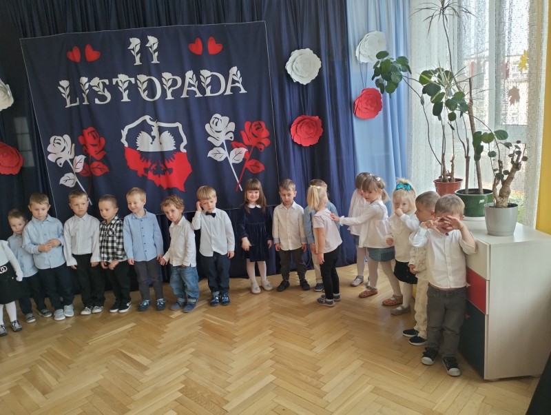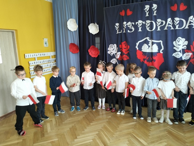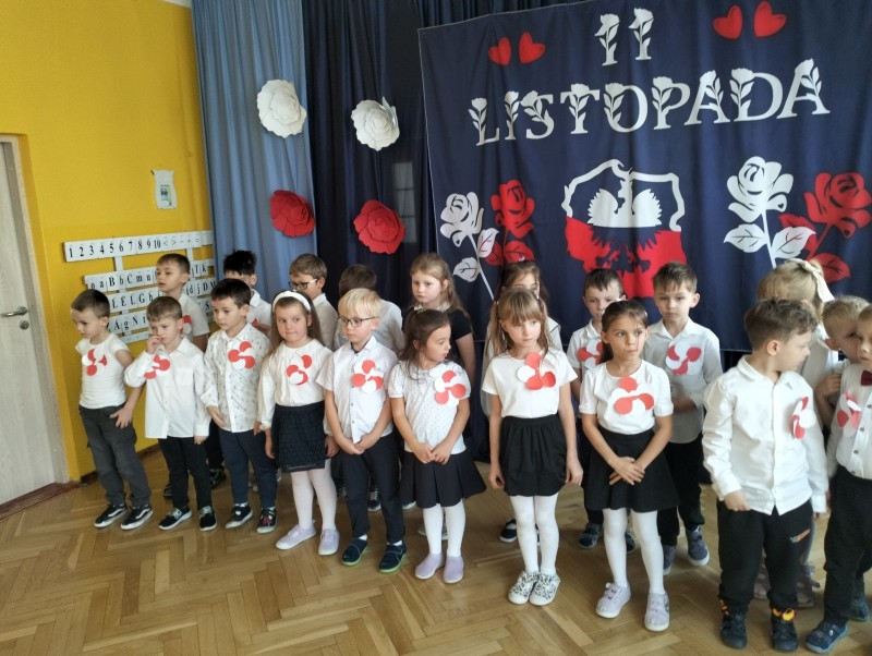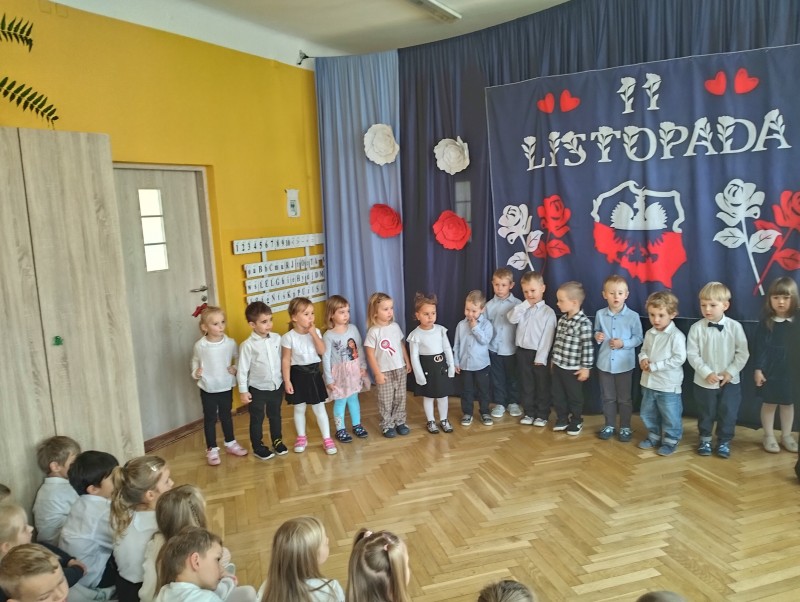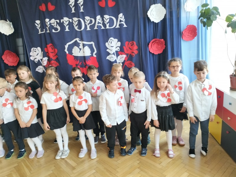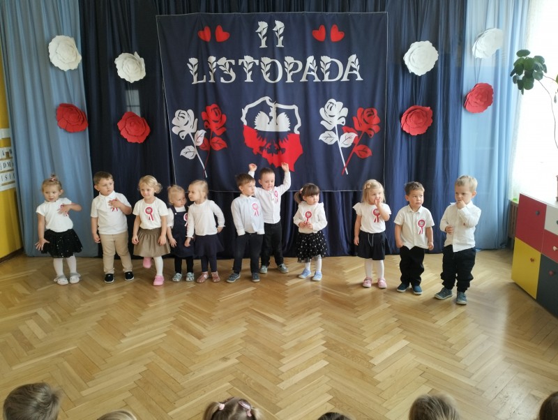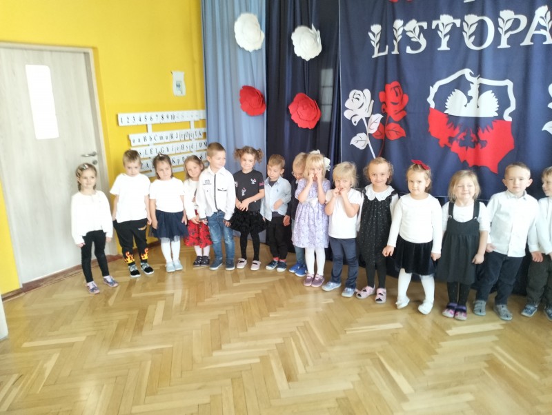 W związku z nadchodzącym Narodowym Świętem Niepodległości nasze przedszkole po raz kolejny włączyło się w ogólnopolską akcję Szkoła do hymnu. Tego dnia dzieci odświętnie ubrane recytowały wiersze, śpiewały piosenki oraz wykonywały prace plastyczne o tematyce patriotycznej, na koniec o 11:11 wszyscy wspólnie odśpiewali hymn Polski.