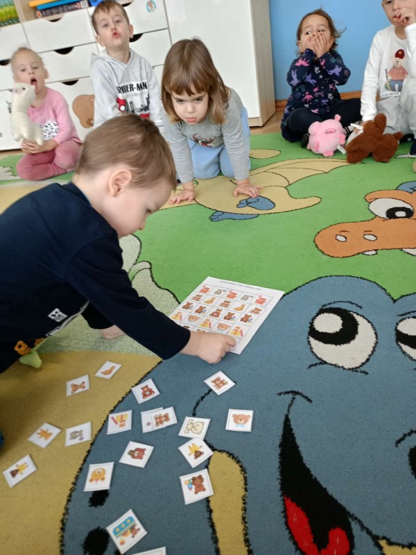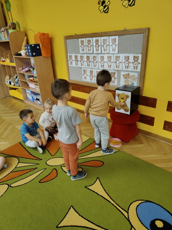 W sali czekało wiele atrakcji. Odbywały się misiowe gry i zabawy, podczas których przedszkolaki ćwiczyły spostrzegawczość, refleks i umiejętność współpracy. Wspólnie śpiewaliśmy piosenki o misiach, a największym hitem okazał się taniec z misiem, który wprowadził dzieci w świetny nastrój i pozwolił im wyrazić energię w rytmie muzyki.