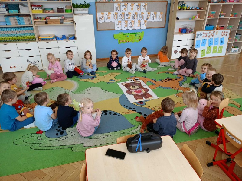25 listopada w przedszkolu obchodziliśmy wyjątkowy Dzień Pluszowego Misia, który przyniósł dzieciom mnóstwo radości i ciepła. Świętowanie rozpoczęliśmy krótką opowieścią o historii tego wyjątkowego dnia. Dzieci dowiedziały się, że święto misia ma swoje początki w wydarzeniu związanym z prezydentem Stanów Zjednoczonych, którego historia z niedźwiadkiem zainspirowała powstanie pierwszego pluszaka.