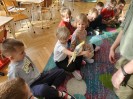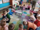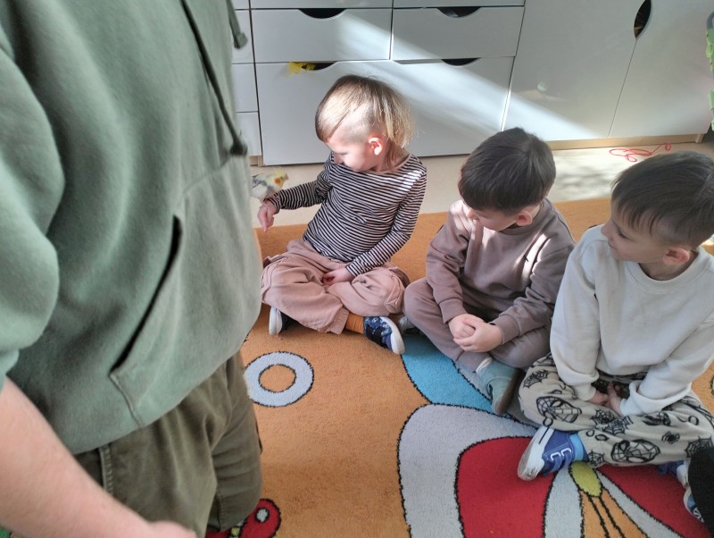 Właściciel ptaków w ciekawy i przystępny sposób opowiadał o różnych gatunkach papug, ich zwyczajach oraz o tym, jak należy dbać o te wyjątkowe zwierzęta. Przedszkolaki z uwagą słuchały opowieści, a następnie chętnie zadawały pytania, wykazując się dużą ciekawością świata.