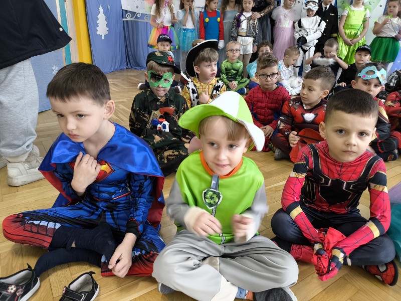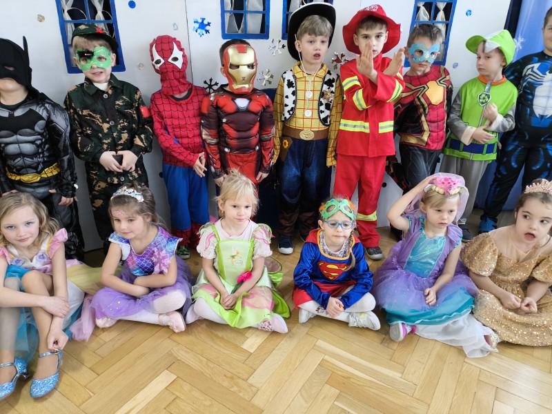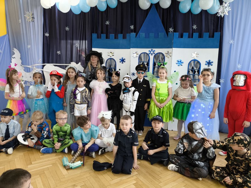 Czwartek 12 lutego w naszym przedszkolu był dniem wyjątkowym i bardzo wyczekiwanym przez wszystkich przedszkolaków. Cała społeczność przedszkola bawiła się na Balu Karnawałowym. Był to dzień wypełniony śmiechem, radością oraz kolorowymi kostiumami, tworzącymi niezapomnianą atmosferę. Dzieci, przebrane za ulubione postacie z bajek, zwierzątka czy super bohaterów, miały okazję do wspólnej zabawy, tańców i śpiewów, a także do odkrywania nowych umiejętności społecznych. Całą imprezę rozkręcał Didżej, który swoją energią zarażał nie tylko dzieci ale również ich rodziców i pracowników przedszkola.