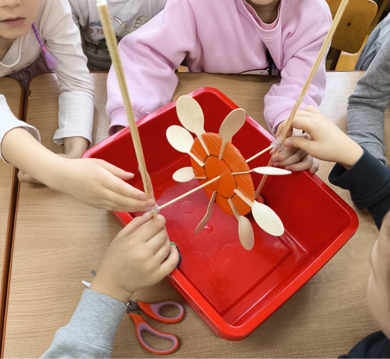 Uczestnicy programu obserwowali, na czym polega ruch prostoliniowy, brali udział w wyścigu z przeszkodami, poznawali tajemnice grawitacji. Dowiedzieli się, jak działają elektrownie wiatrowe i wodne dziś, a jak działały kiedyś. Podczas zajęć dzieci budowały i testowały rozmaite modele samolotów, spinnerów i torów kulkowych, na których obserwowały, jak poruszają się obiekty o zróżnicowanej masie i wielkości. Z pomocą nauczyciela zbudowały też i testowały model turbiny wodnej. Był to czas pełen kreatywno-technicznych odkryć i bardzo dobrej zabawy.